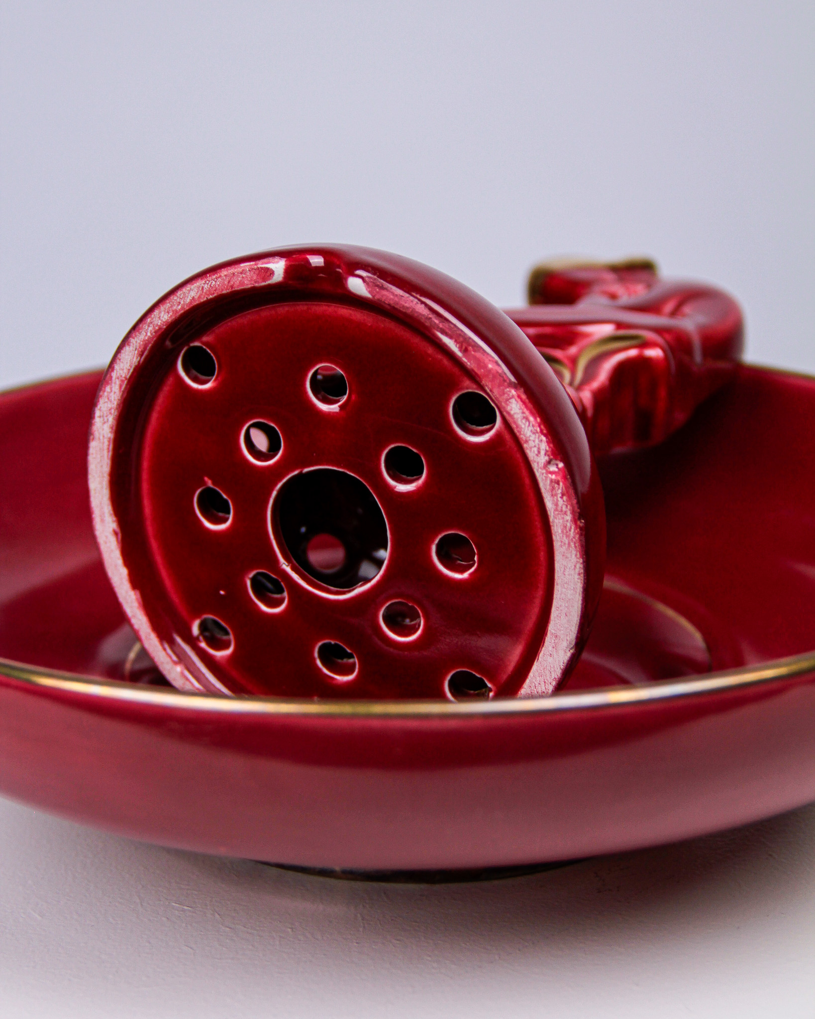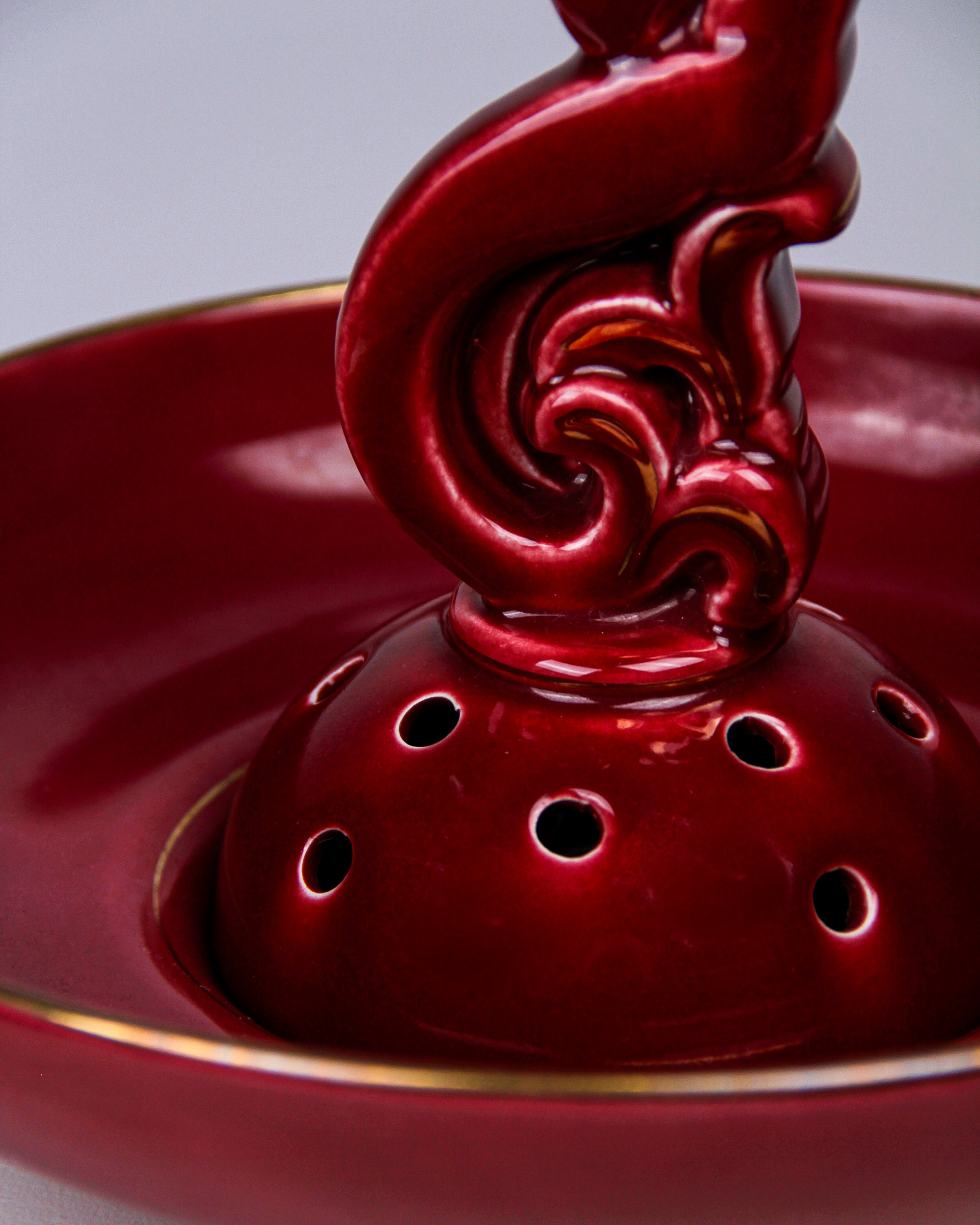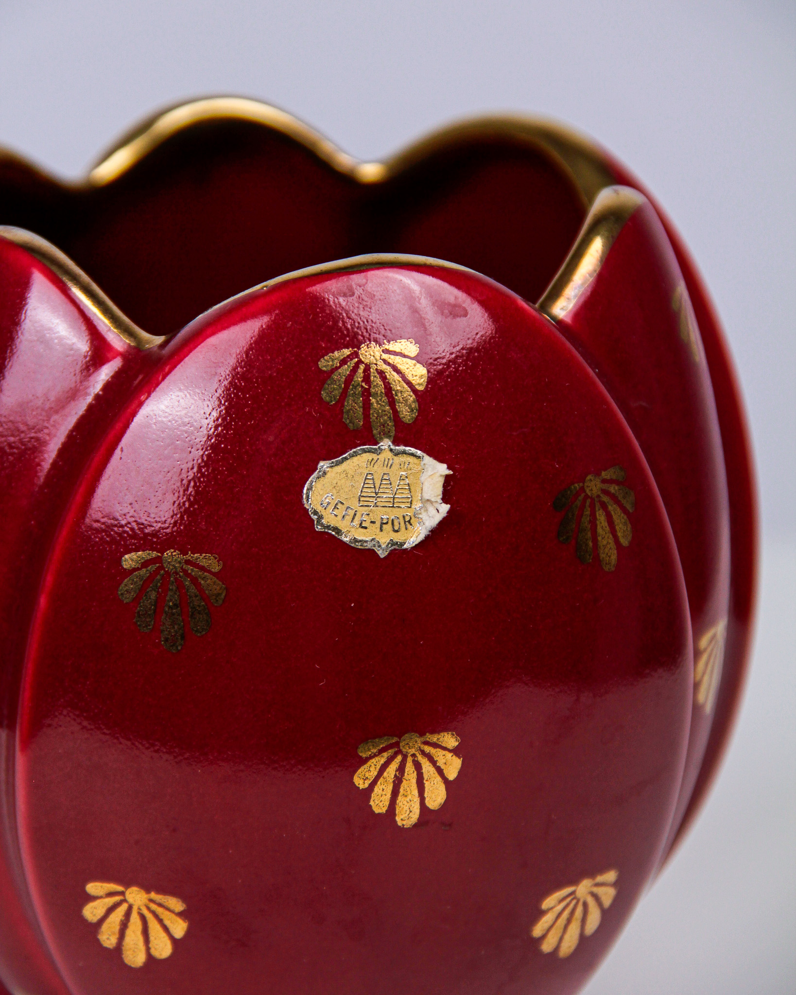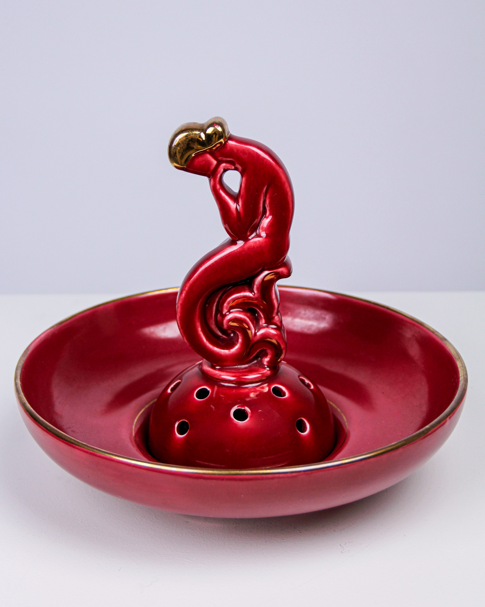 Auktioner Keramik & Porslin Arthur Percy, blomsteruppsats och vas, âRubinâ, rödglaserat stengods, tillverkarmĂ€rkta Upsala Ekeby Gefle