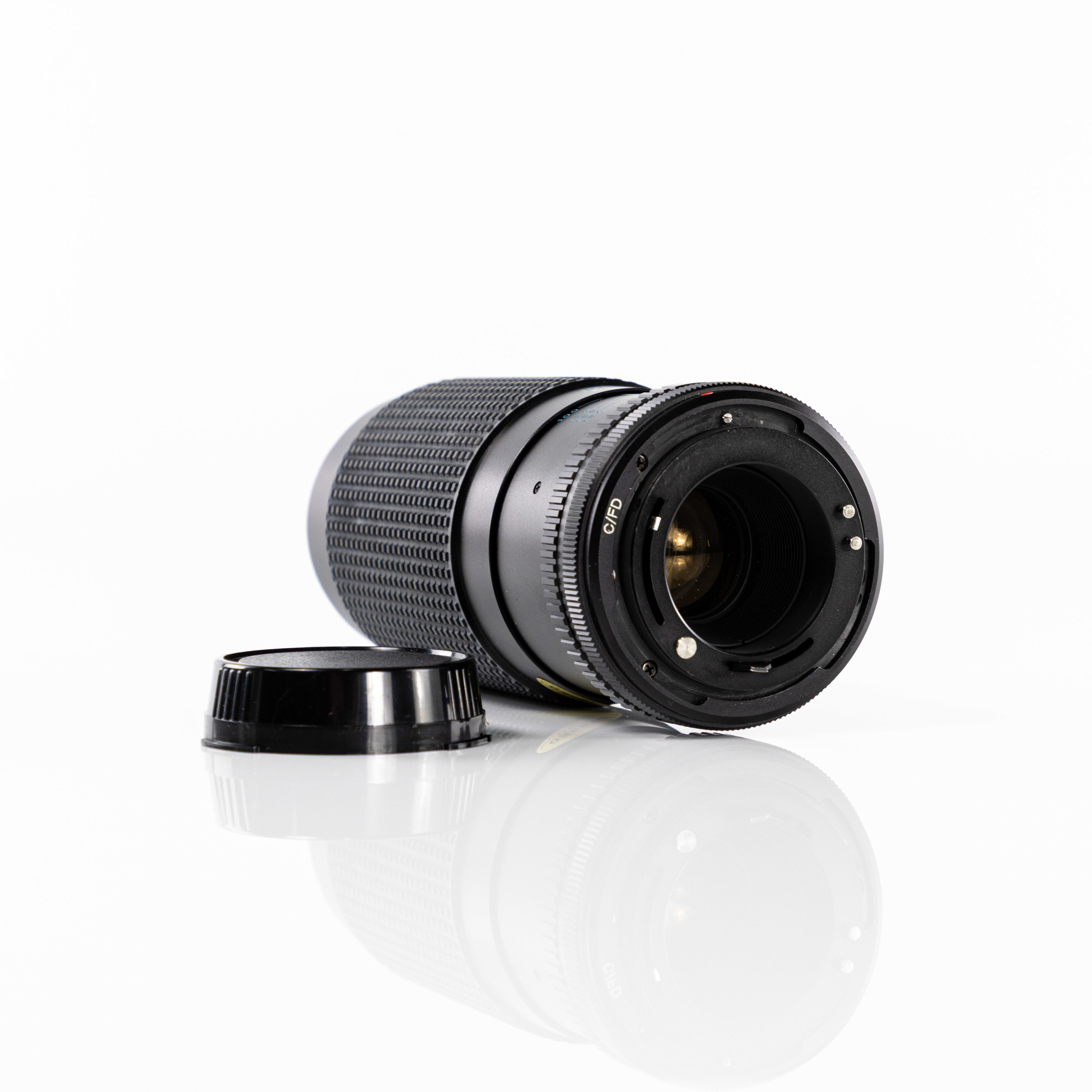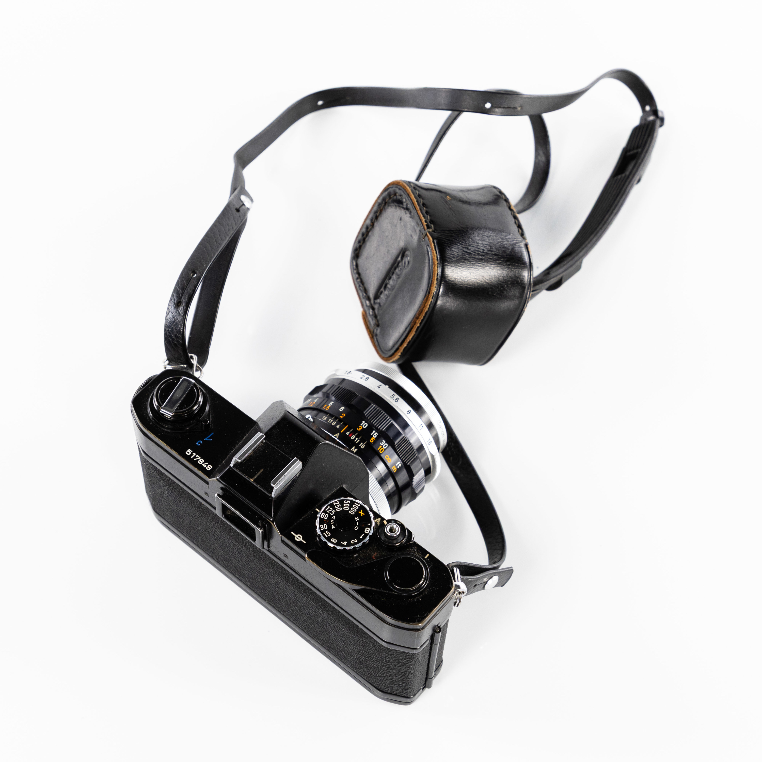 Systemkamera, Canon FT QL, Optik; Canon Lens FL 50 mm/1:1.8, RMC Tokina 80-200 mm/1:4, Blixt; Rollei E 22C, ca 1960/70-tal, Japan, kommer med original bärväska i svart läder, enklare kameraväska i brunt fejkskinn samt diverse bruksanvisningar och litteratur
