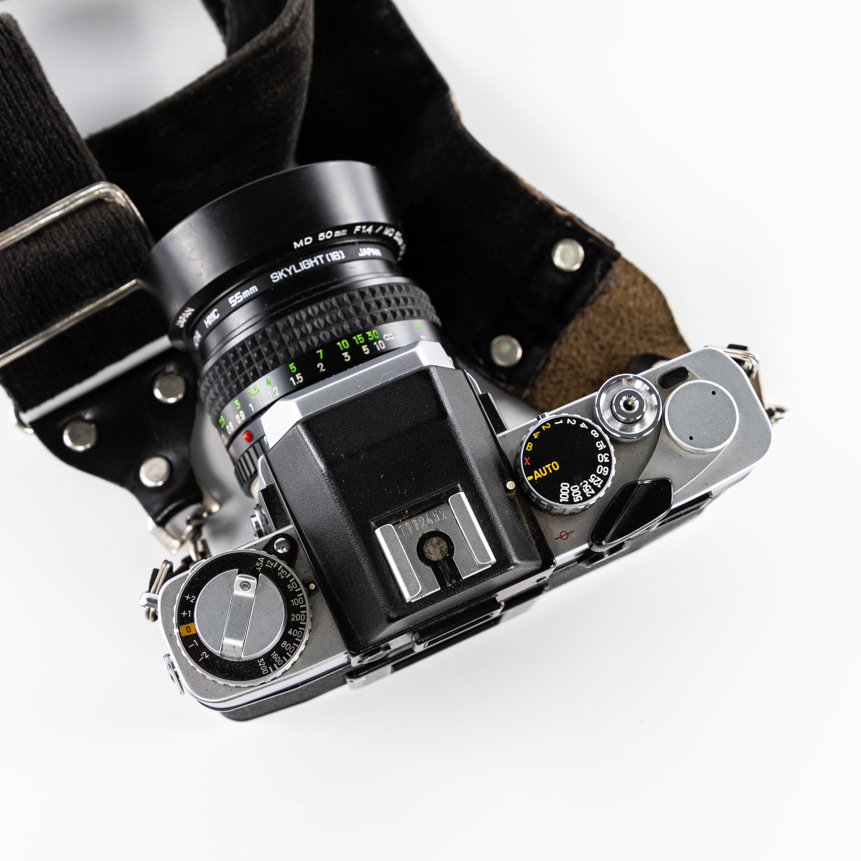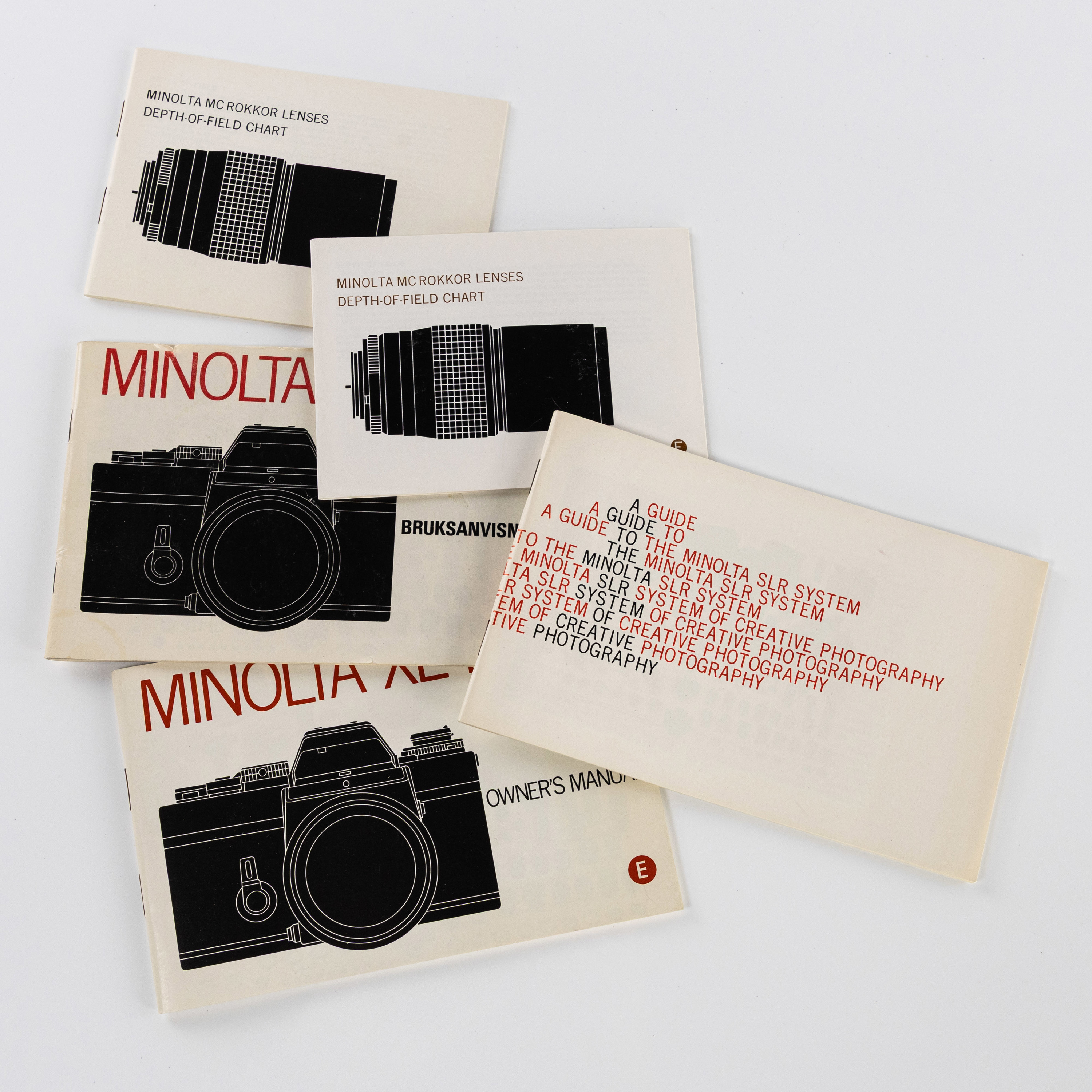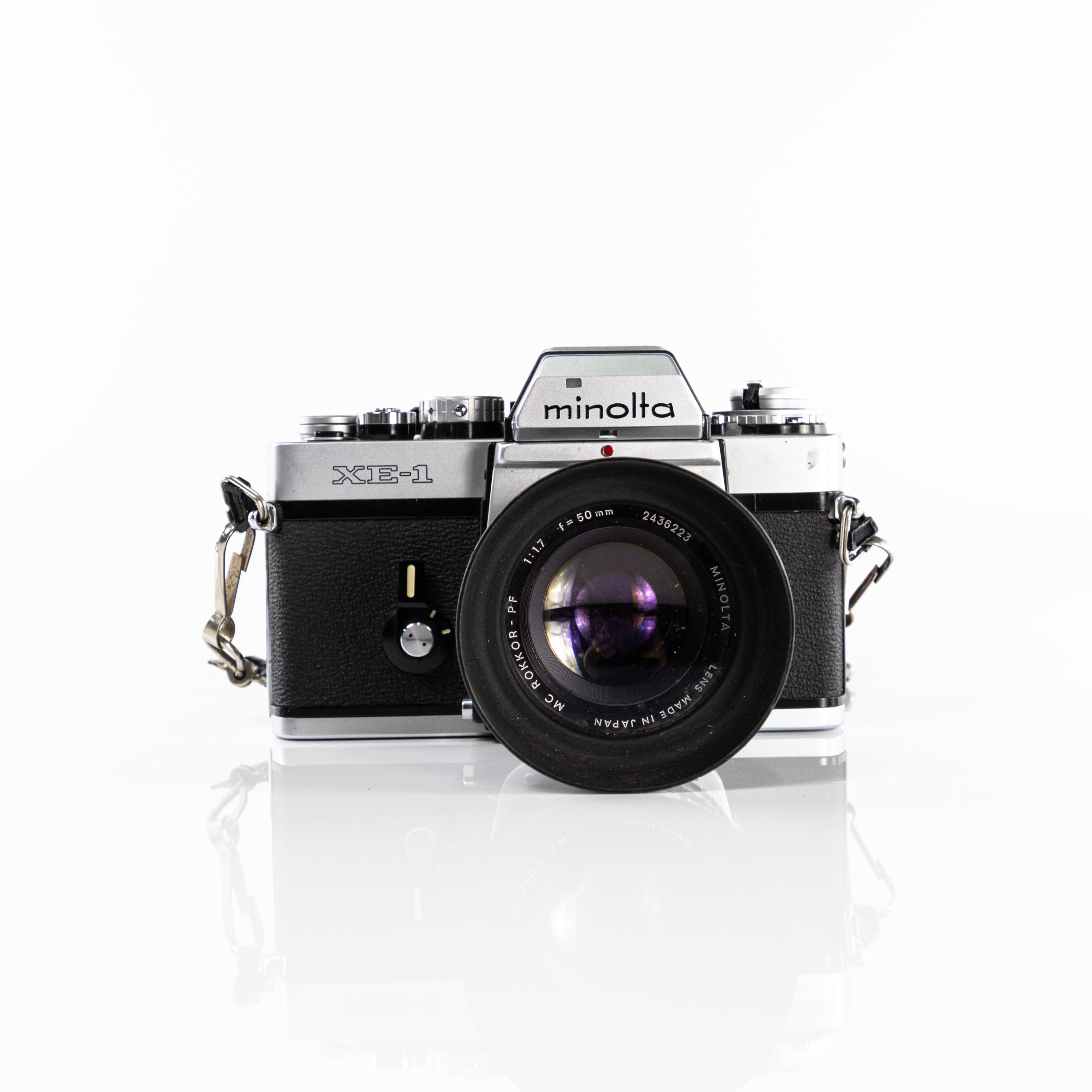 Systemkamera, Minolta XE-1, Optik; MC Rokkor-PF 50 mm/1:1.7, Blixt; Braun 2000/28 BVC, ca 1970-tal, Japan, kommer med bruksanvisningar och originalkartong