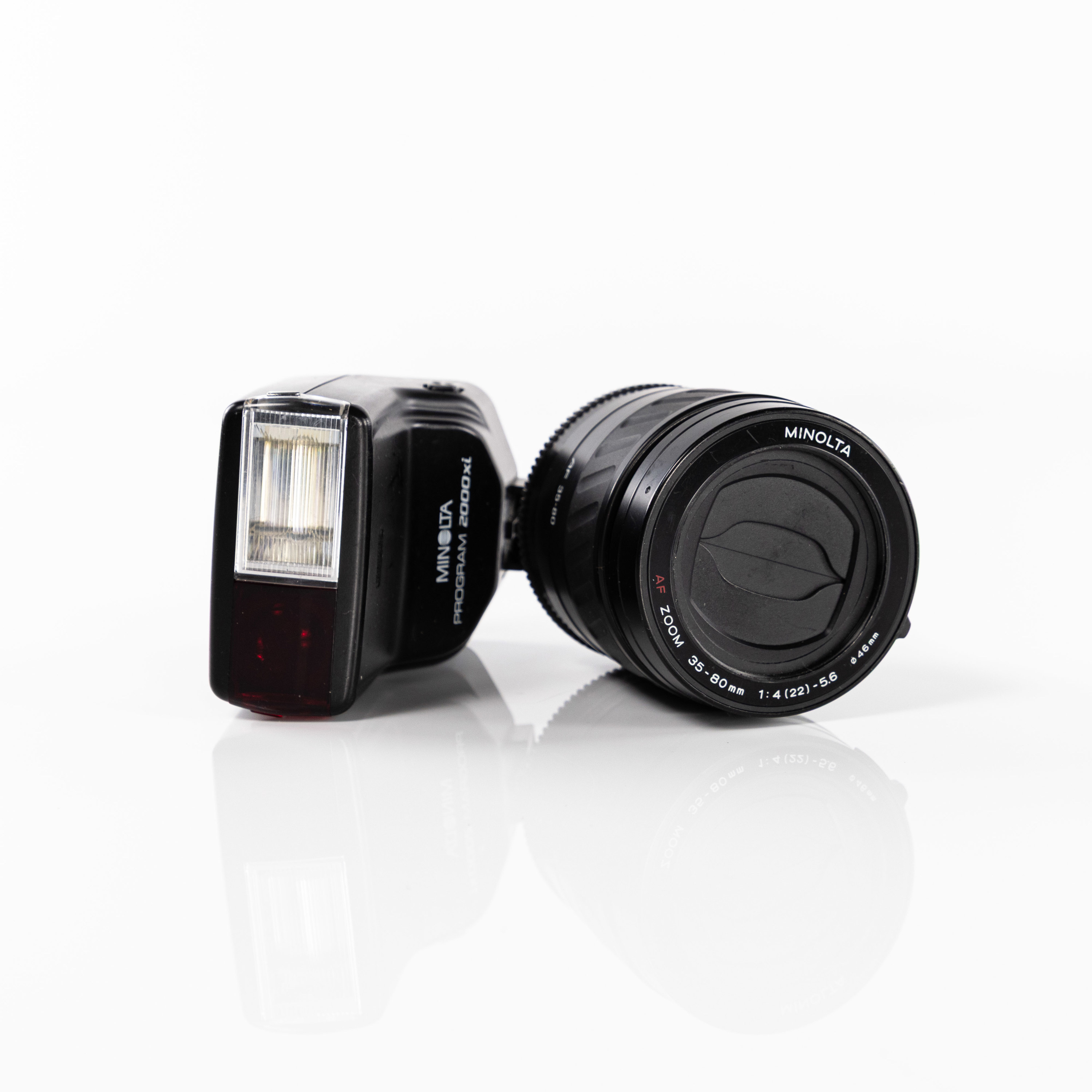 Systemkamera, Minolta, Dynax 3000i, 2 objektiv, tillbehör, 80/90-tal, Japan