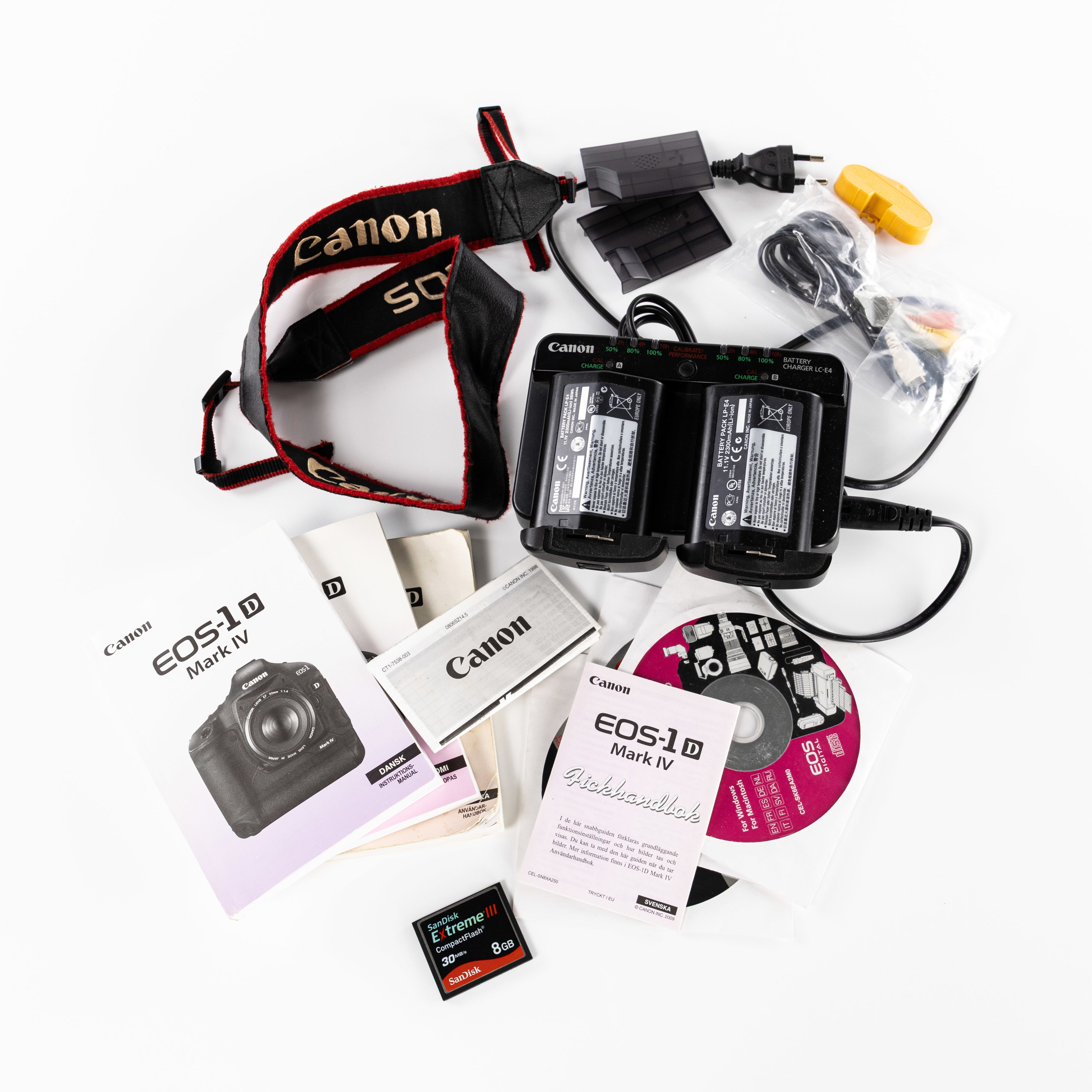 Digital systemkamera, Canon EOS 1D Mark IV, fullformat 16.1 Megapixlar, ca 2010, Japan, kommer med laddare, dubbla batterier, bruksanvisningar samt SanDisk Extreme III CF-kort på 8 GB