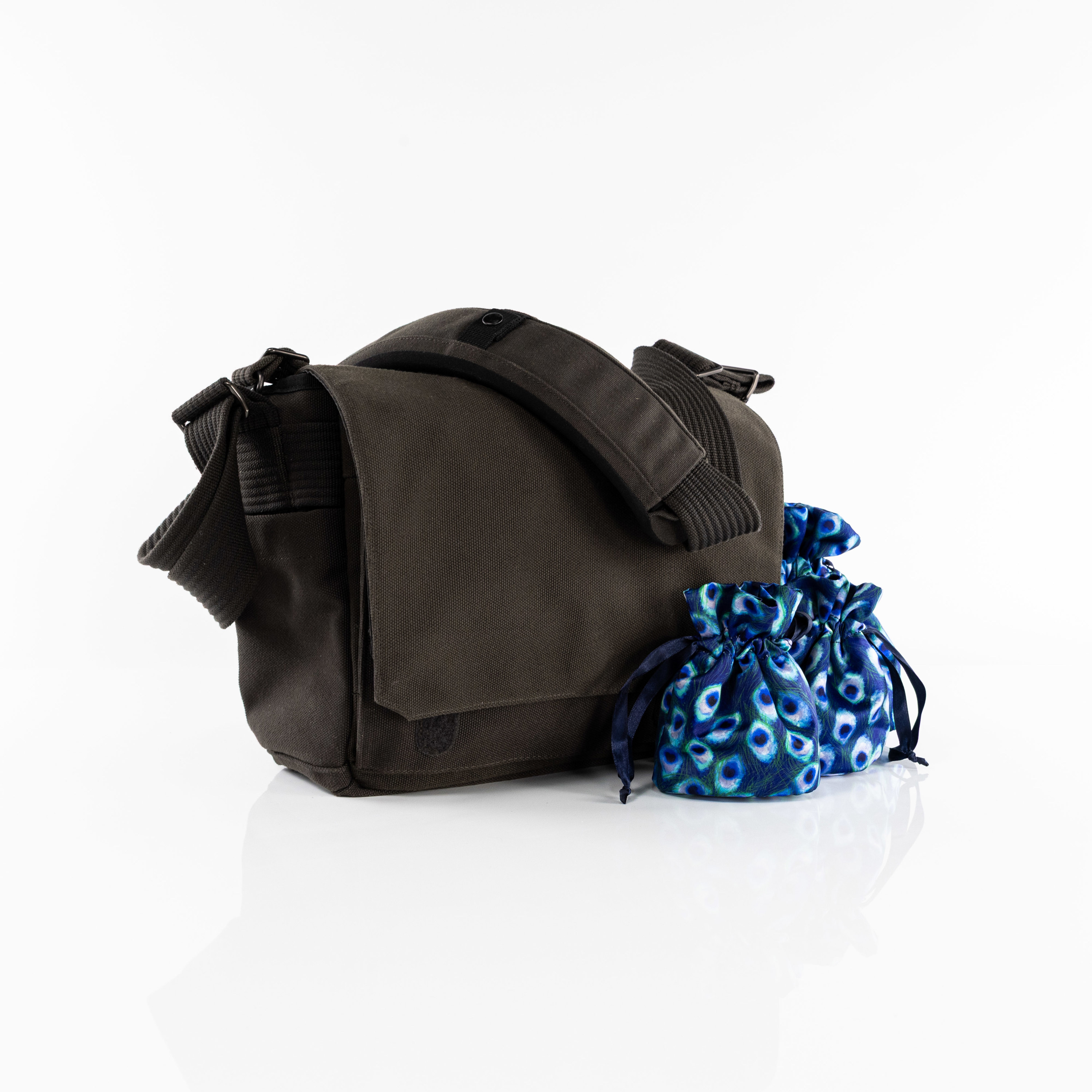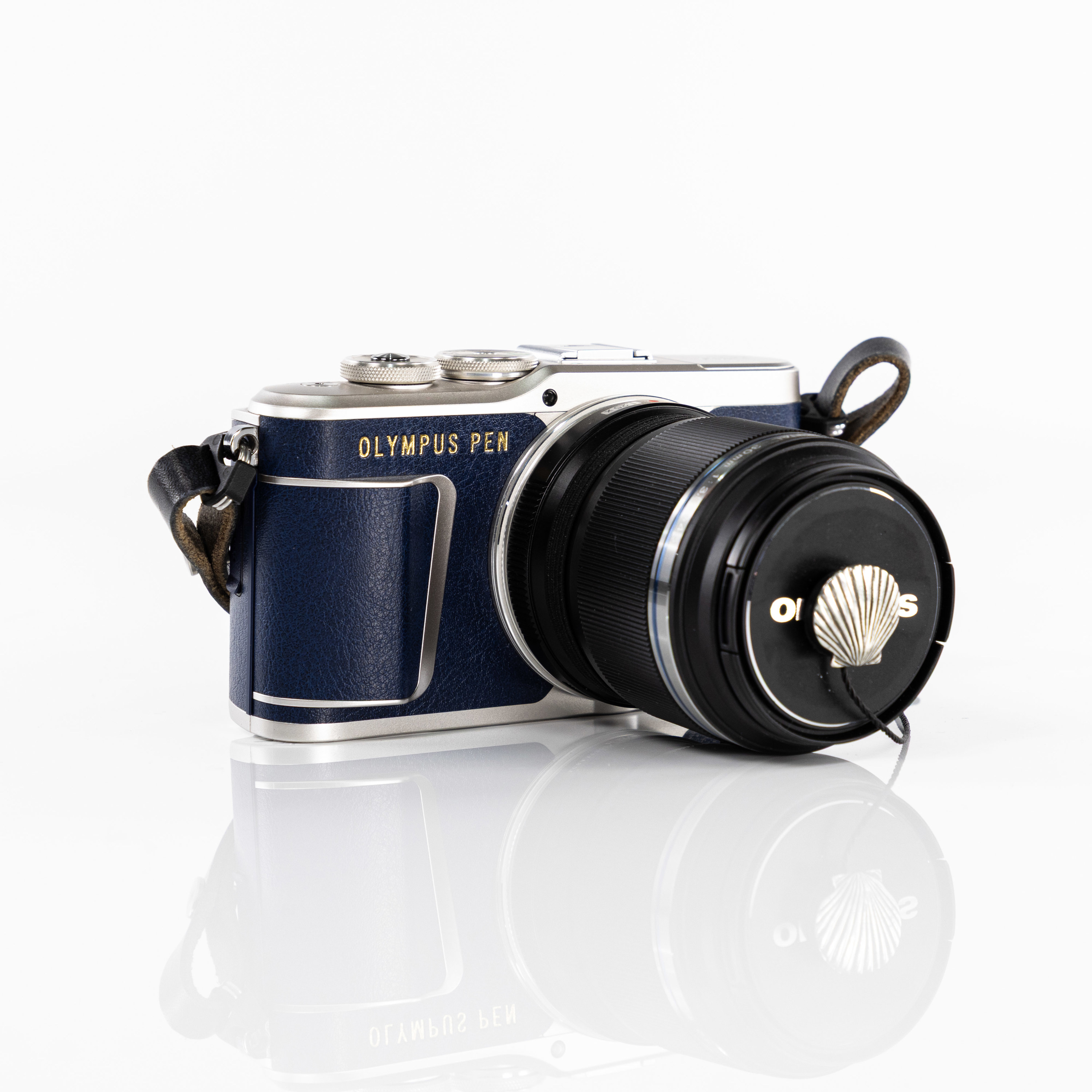 Digital systemkamera, Olympus PEN e-PL9, blå, Optik; M.Zuiko Digital 14-42 mm/1:3.5-5.6, M.Zuiko Digital 30 mm/1:3.5, M.Zuiko Digital 75-300 mm/1:4.8-6.7, ca 2018, Japan, kommer med egensydda objektivpåsar, Joby Gorillapod-stativ samt större Lowepro-kameraväska i textil