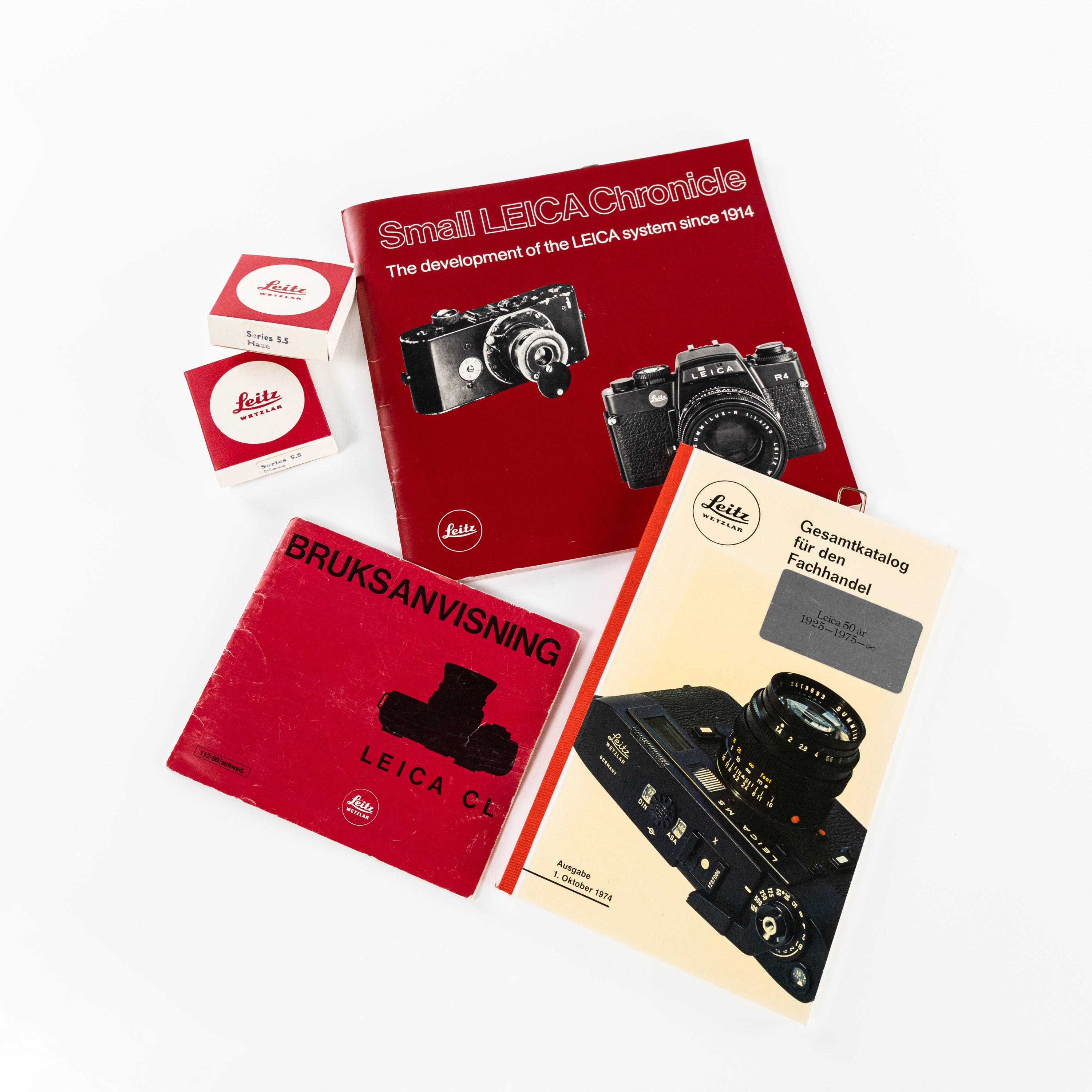 Mätsökarkamera, Leica CL, Optik; Leitz Wetzlar Summicron-C 40 mm/1:2, Leitz Wetzlar Elmar-C 90 mm/1:4, båda med original Leitz UV-filter monterade, ca tidigt 1970-tal, Japan, kommer i original kameraväska med diverse litteratur i form av: Bruksanvisning, "Gesamtkatalog für den Fachhandel samt "Small LEICA Chronicle"