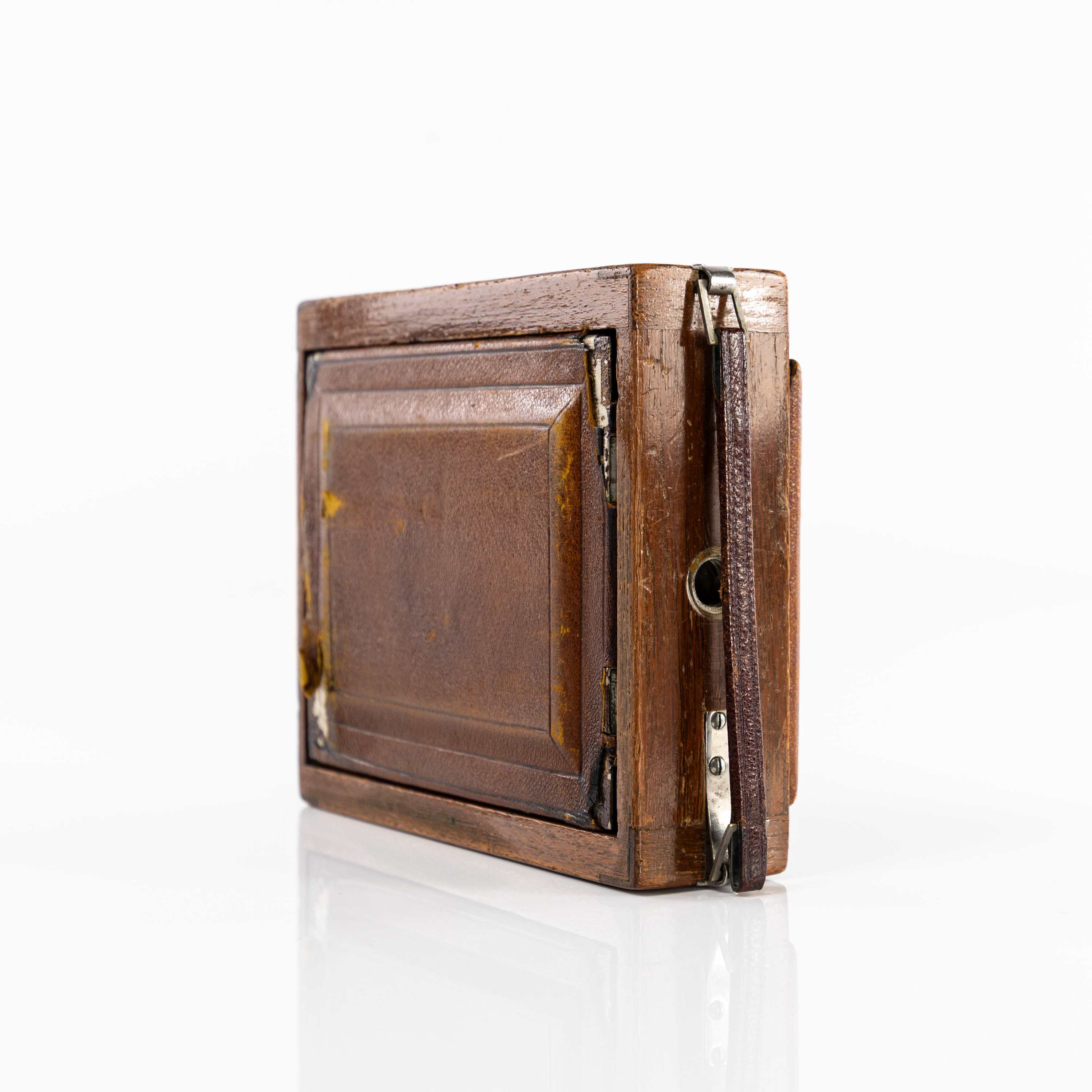 Bälgkamera, Contessa Nettel Tropen/Tropical, mahogny och läder, Optik; Carl Zeiss Tessar 120 mm/1:4.5, ca 1920-tal, Tyskland, kommer med samtida väska i brunt läder