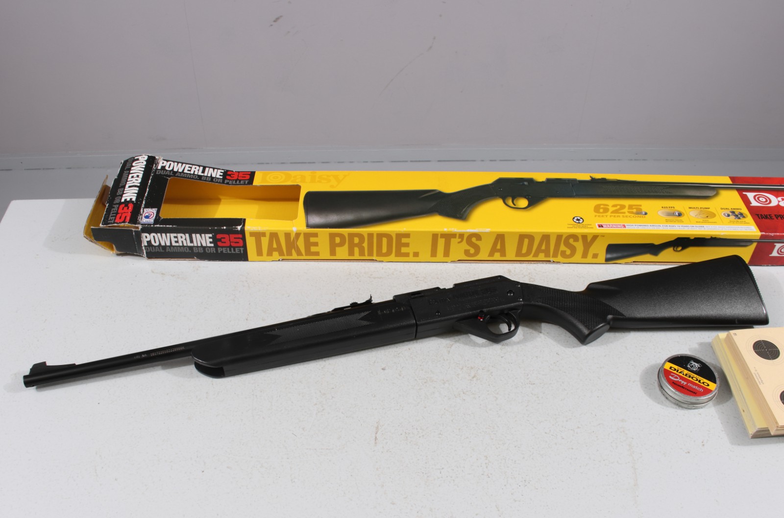 Daisy Powerline 35, cal:4,5 mm, modern tillverkning, originalkartong, skott och måltavlor medföljer, längd 87,5 cm. (vån3)