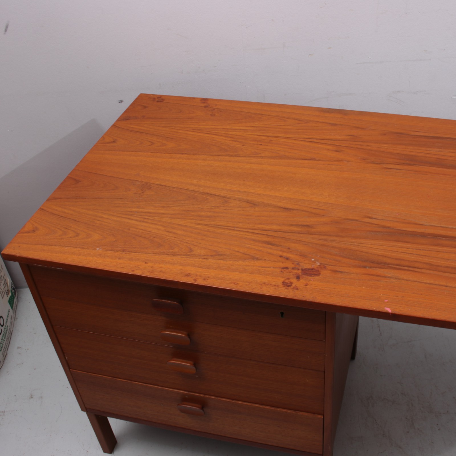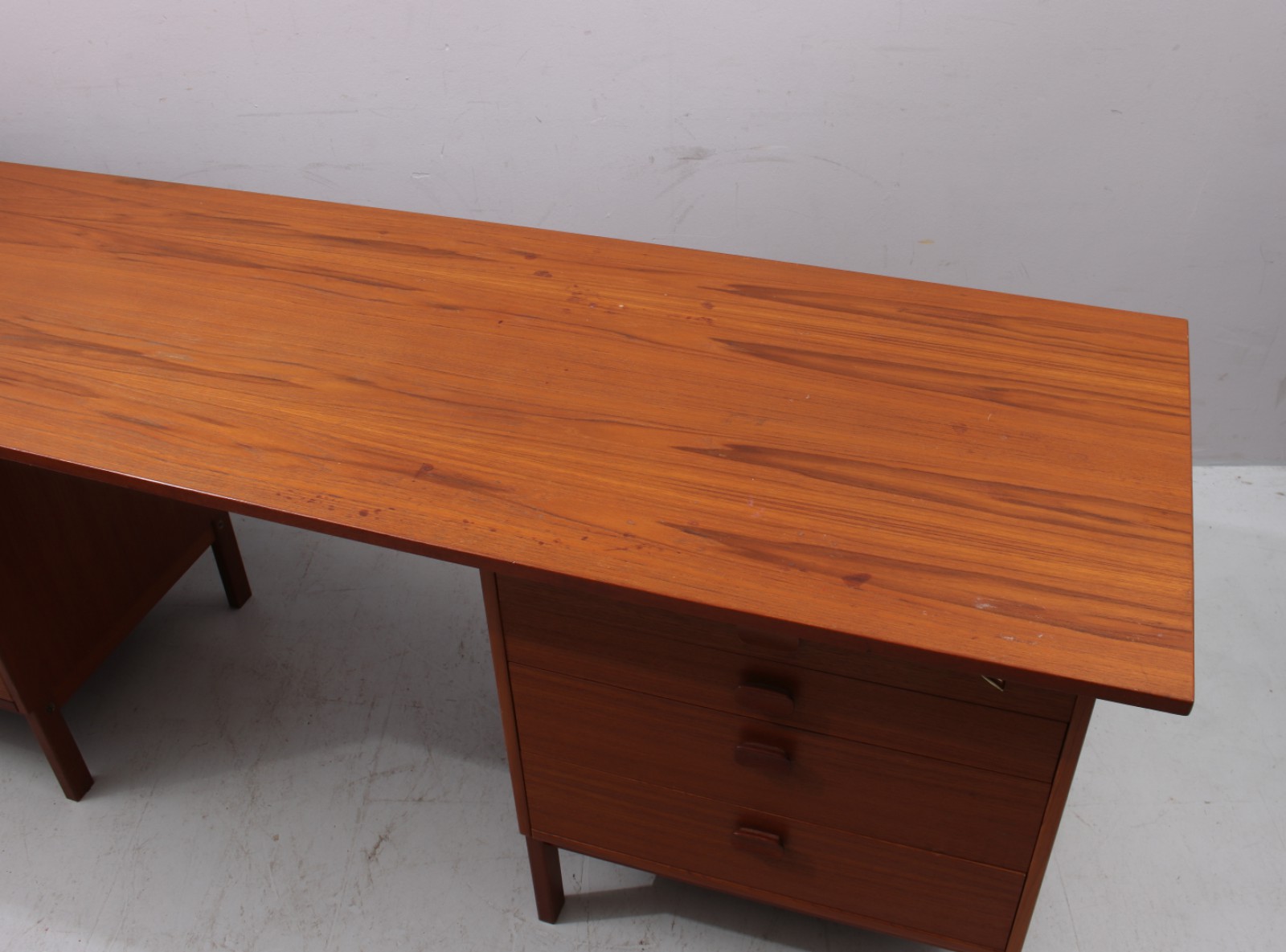 Fanerat med teak, 1960-tal, 1960-tal, åldersrelaterat slitage, skiva ställvis med ytliga repor och ringmärken, H.72, B.200, Dj.63 cm. (vån1)