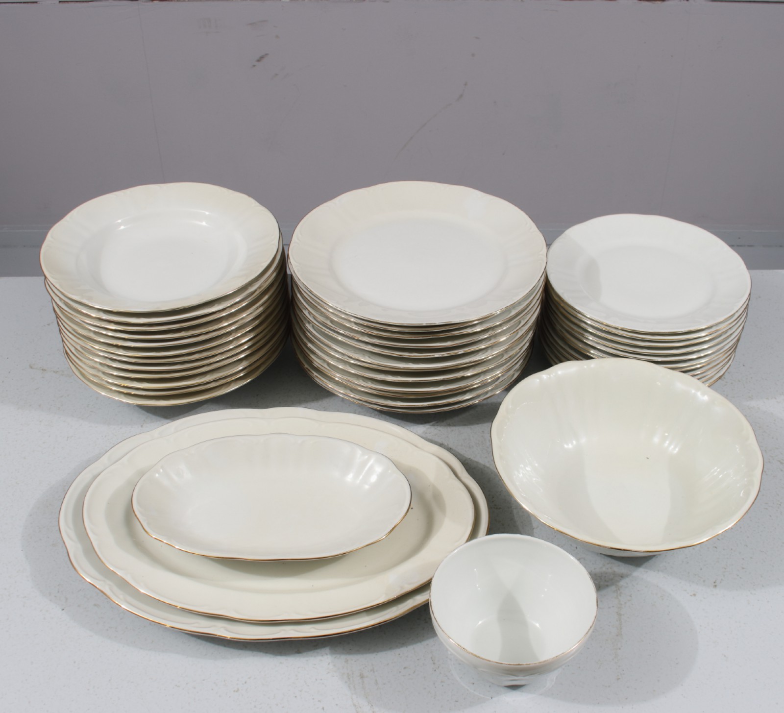 41 delar, 12st mattallrikar, 12st djupa tallrikar, 12st förrättstallrikar, 3st uppl.fat samt 2st skålar. (vån3)
