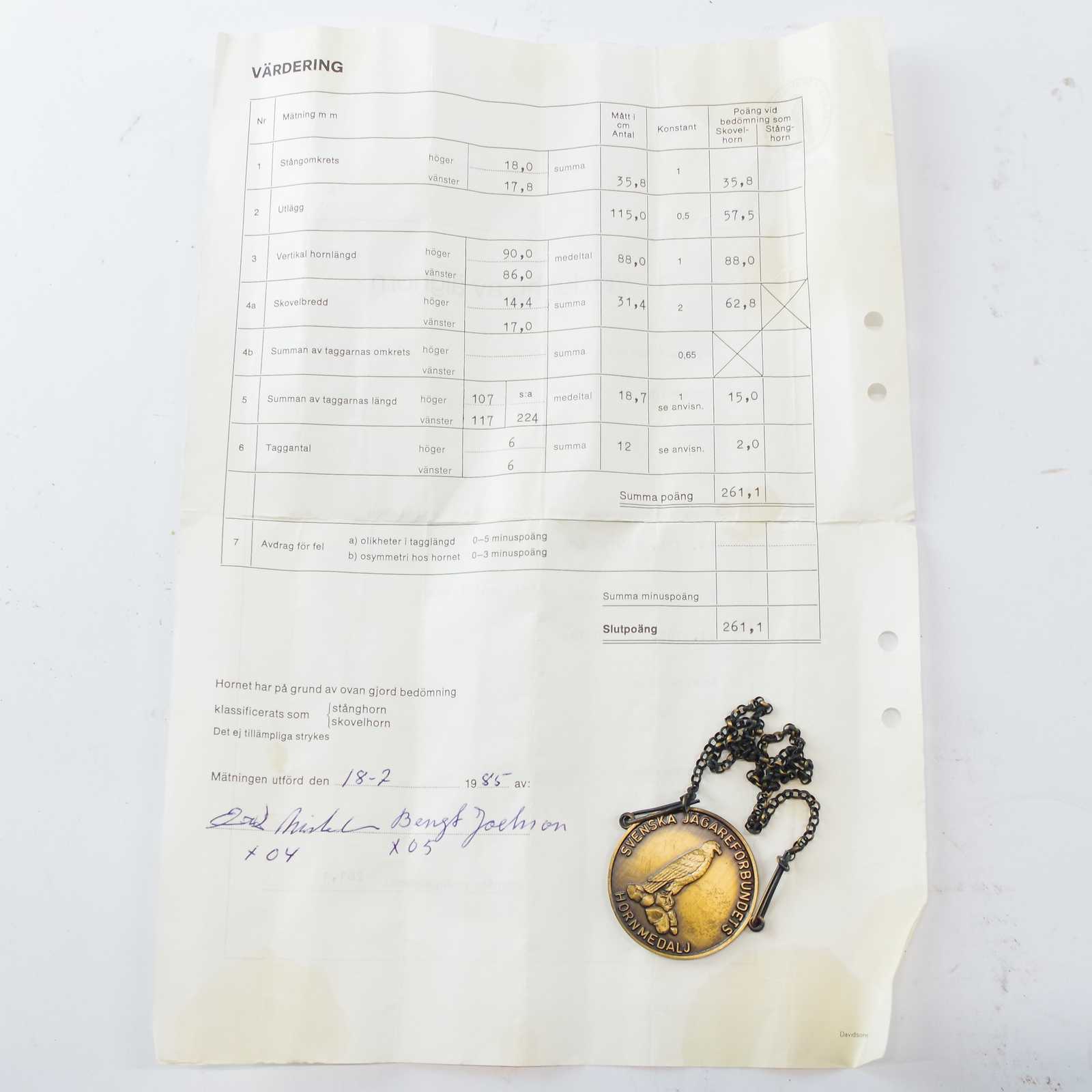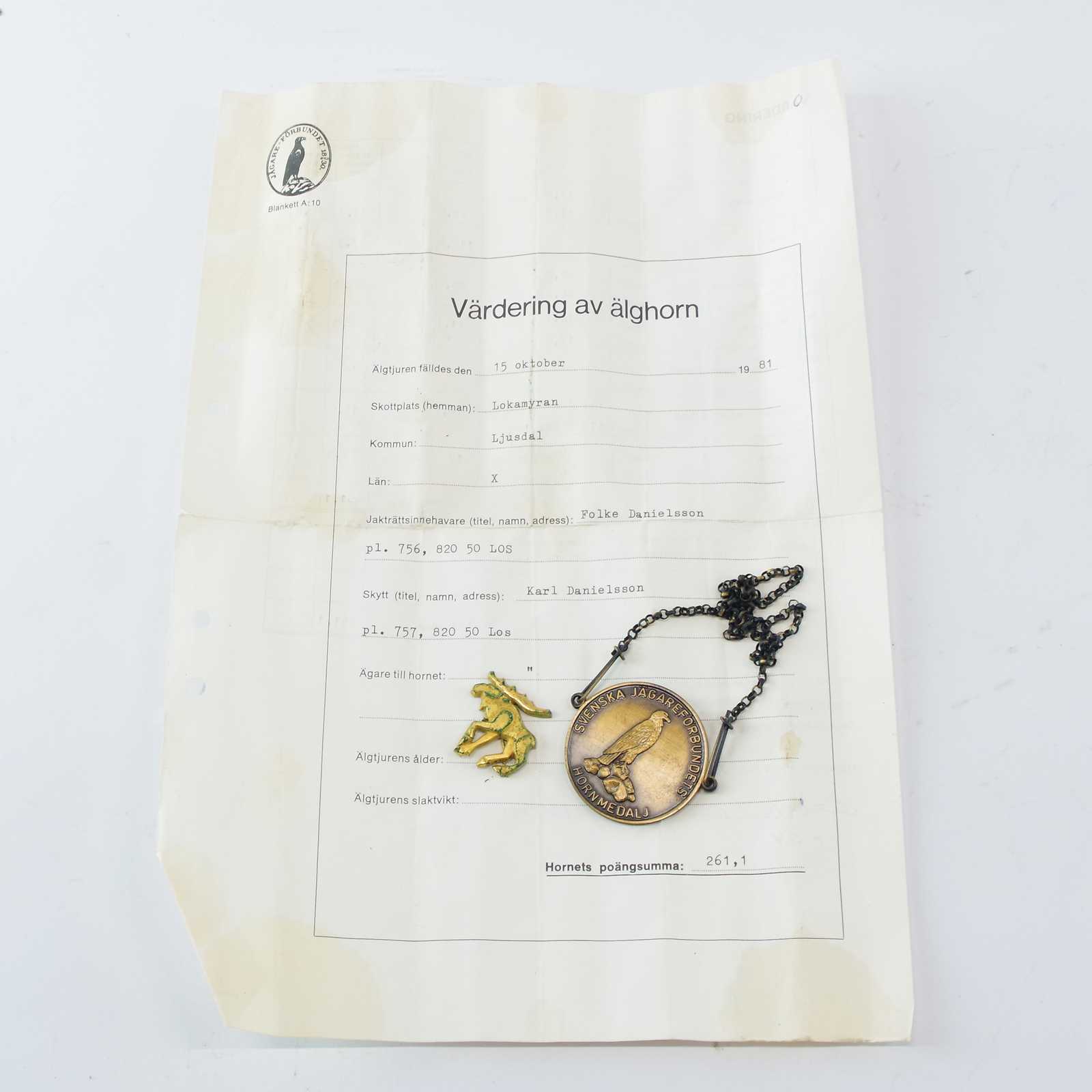 ÄLGHORN, 12 taggar, B: 115cm, värdering av älghorn medföljer, hornets poängsumma: 261,1