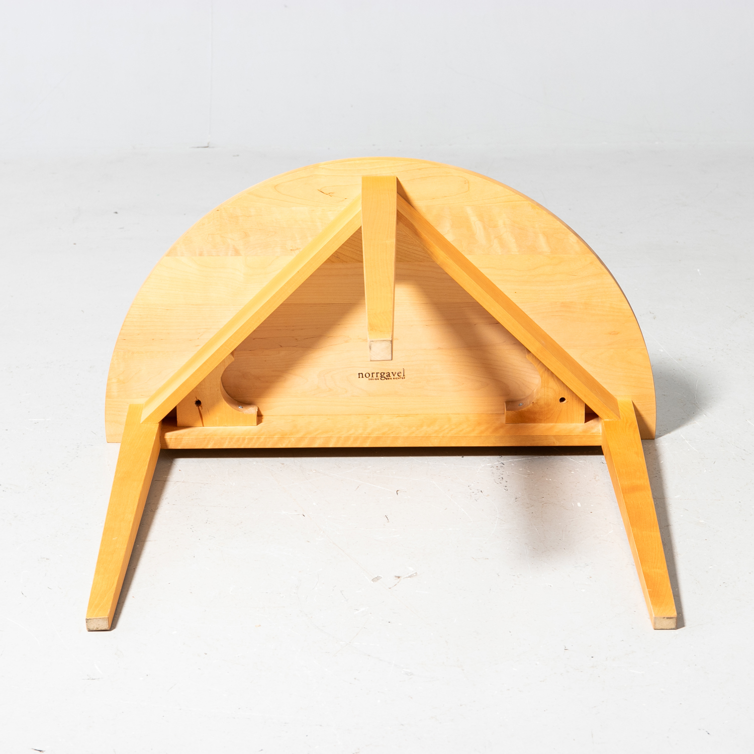 NORRGAVEL halvmånebord, samtida, björk, brännmärkt.