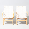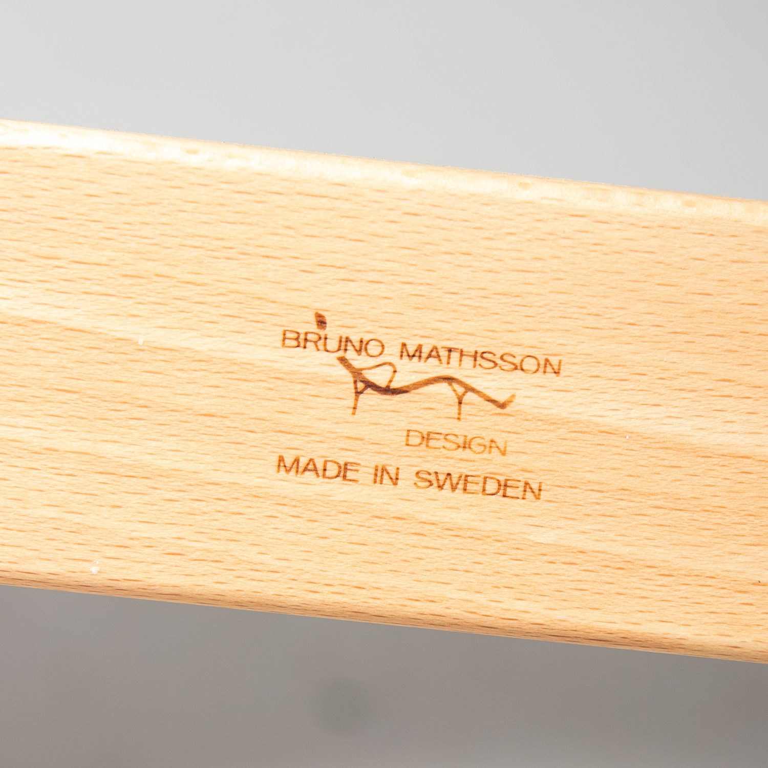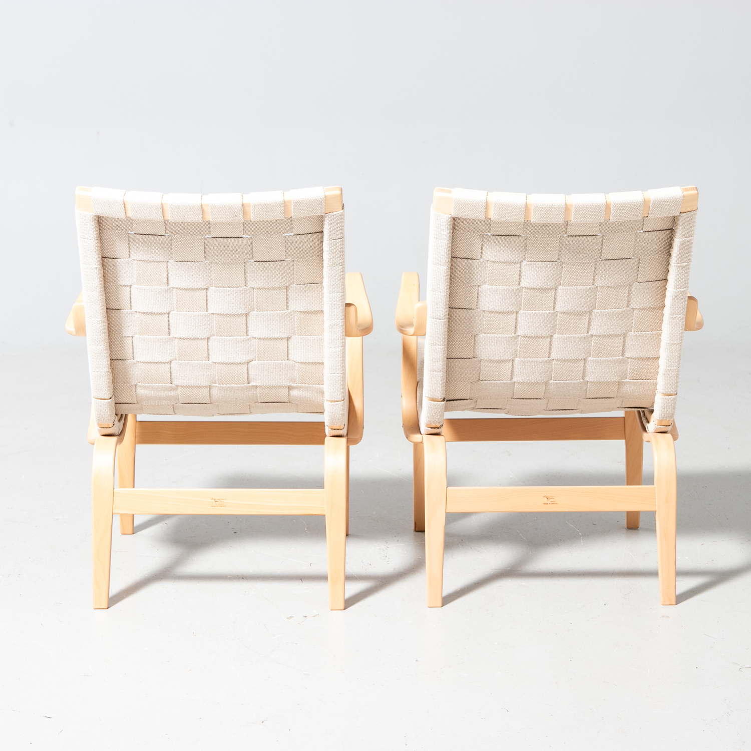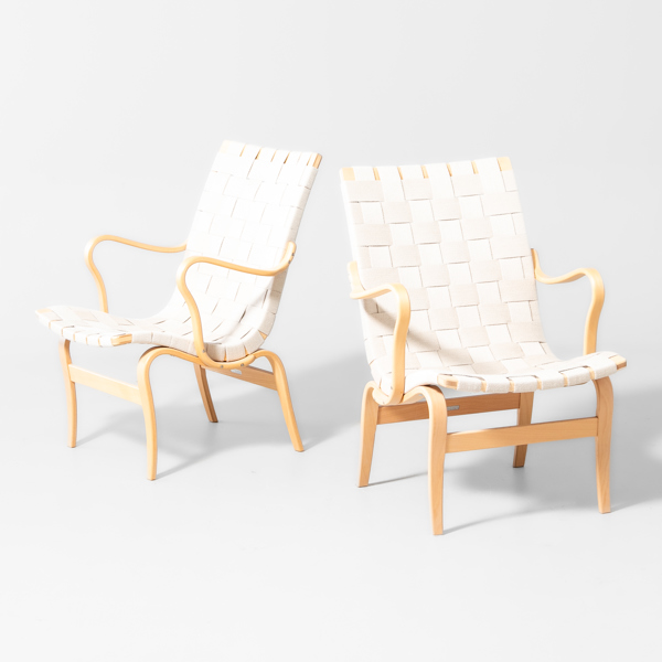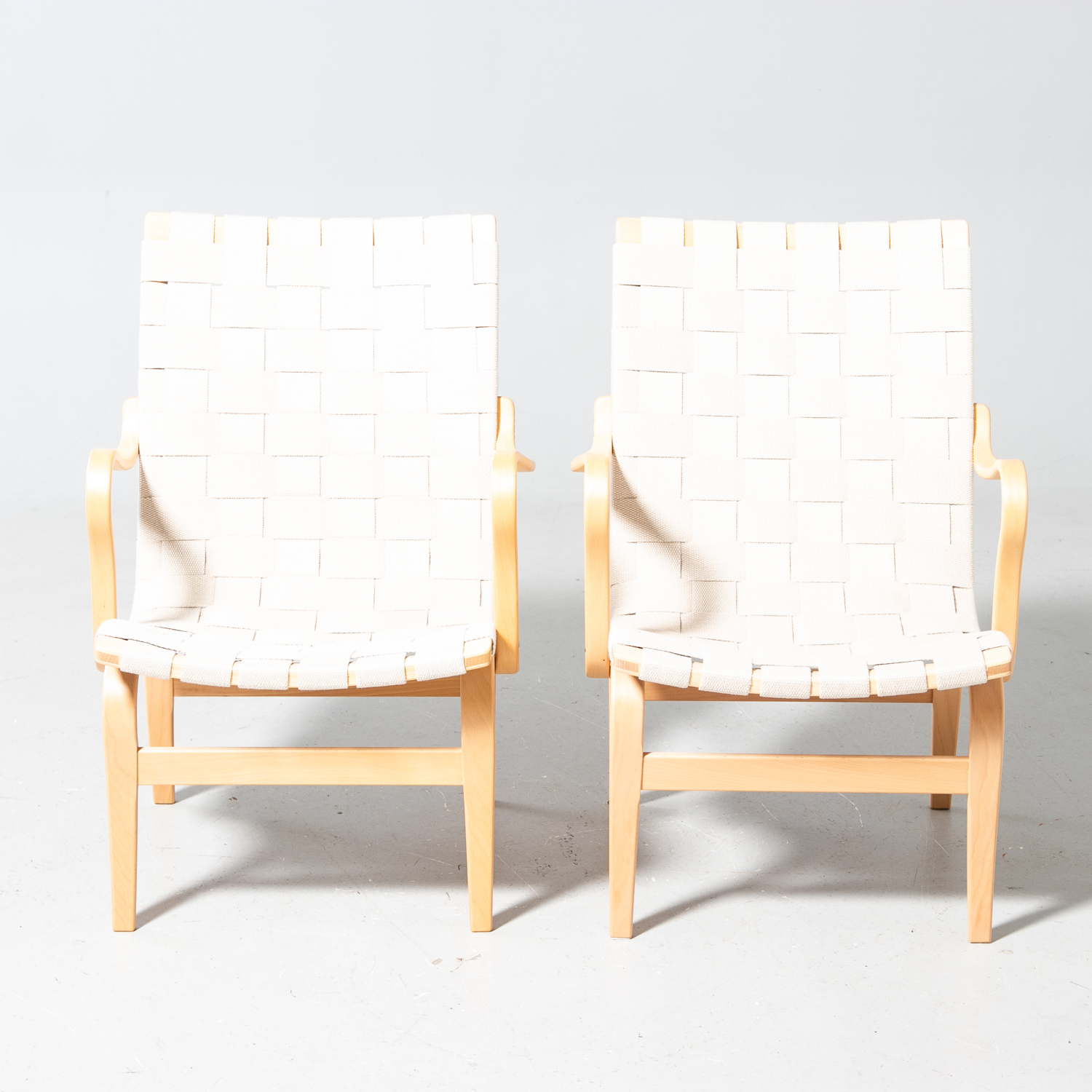 BRUNO MATHSSON "Eva", Karmstolar, ett par, brännmärkta, samtida, stomme av bok.