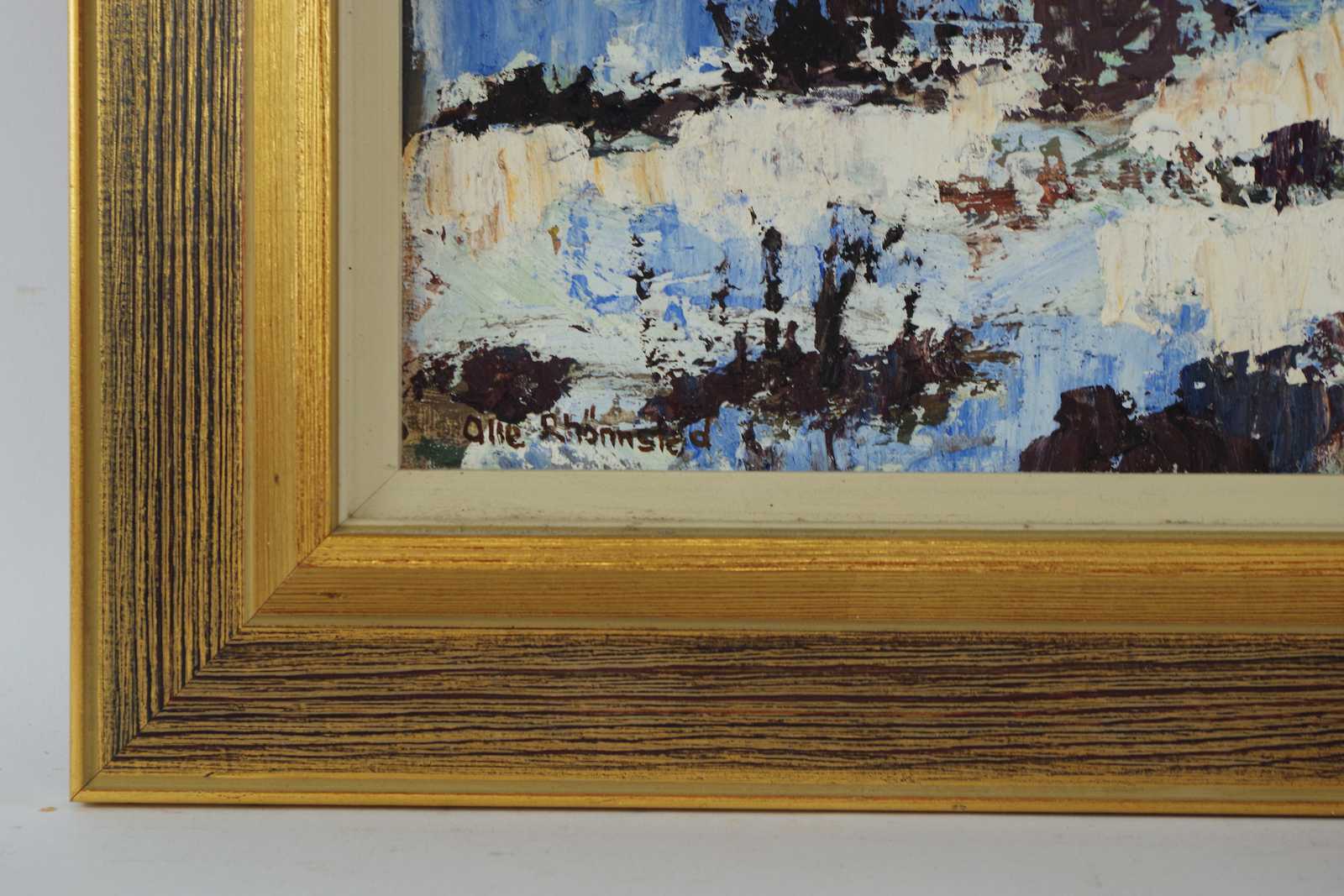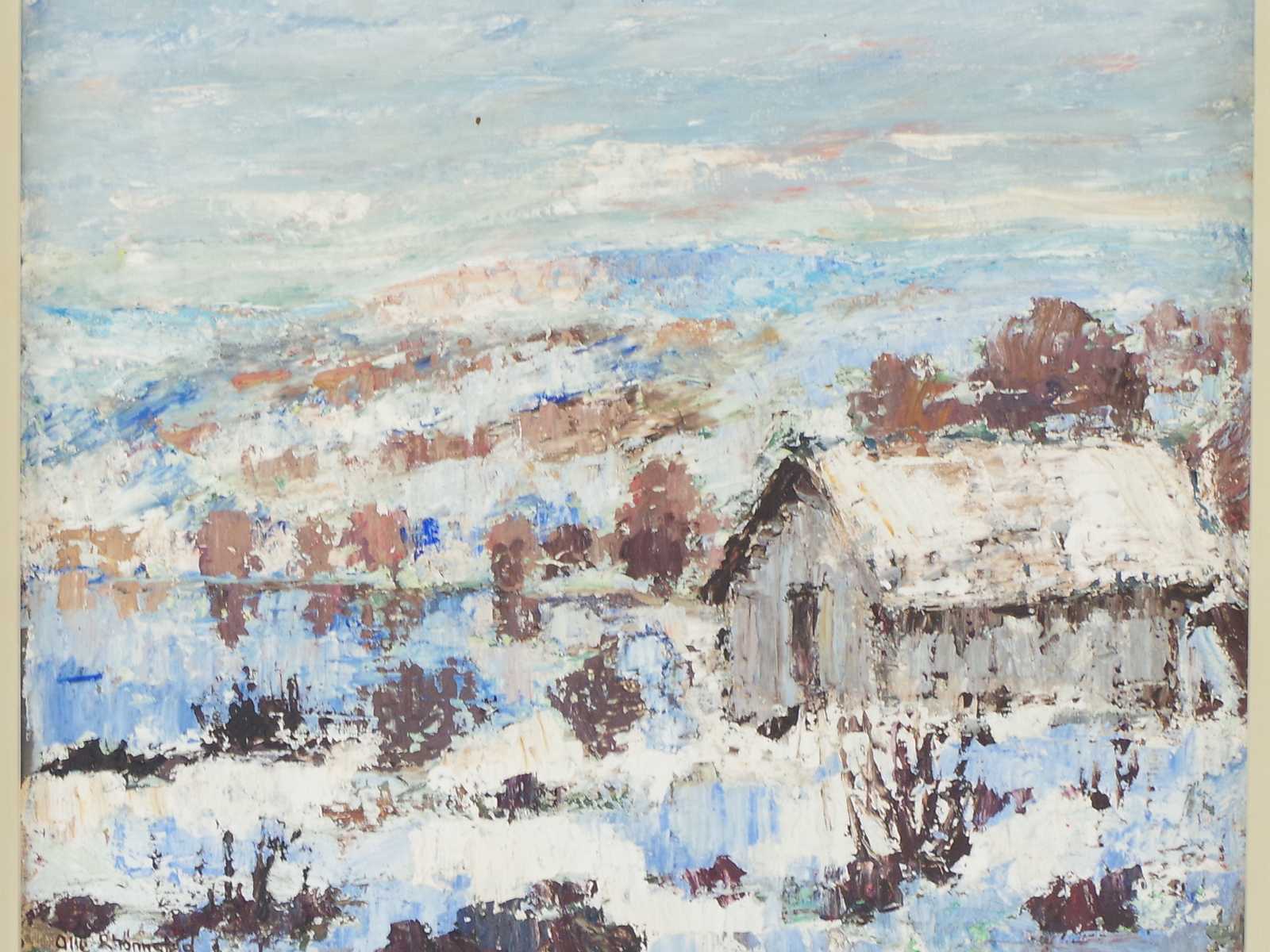 Auktioner Konst & Grafik TAVLA Olle Rhönnstad "Fäbostuga, Lillehammer" olja på duk. 40x32cm bildytans mått