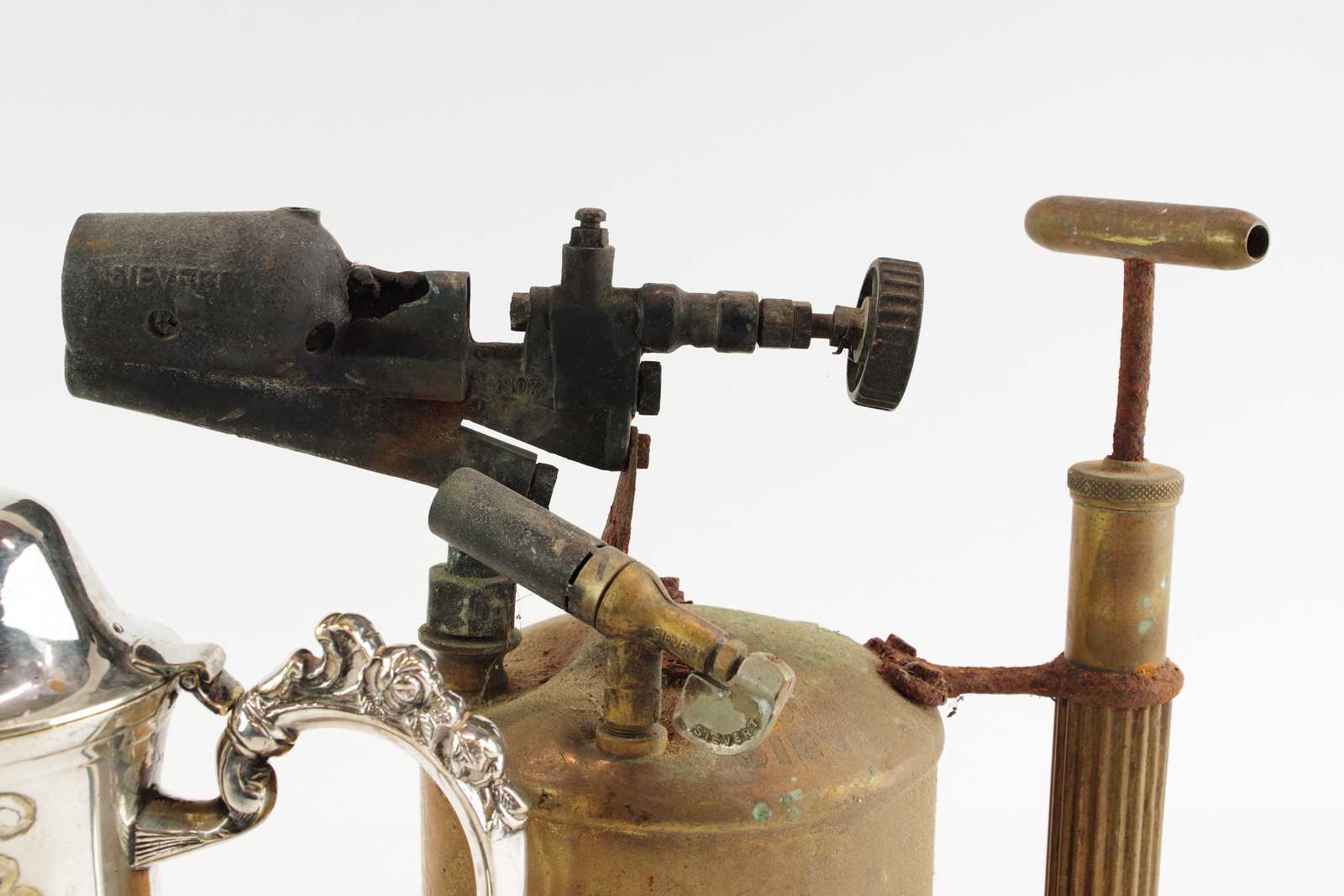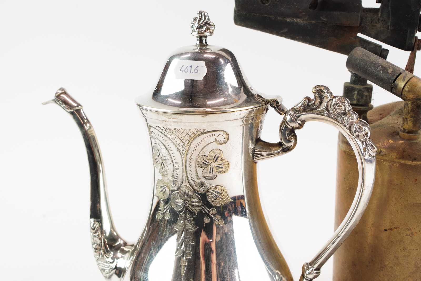 Bilder BLÅSLAMPA Max Sievert & KAFFEKANNA nysilver H:25 cm (Lock löst på kanna, rost och slitage på blåslampa)