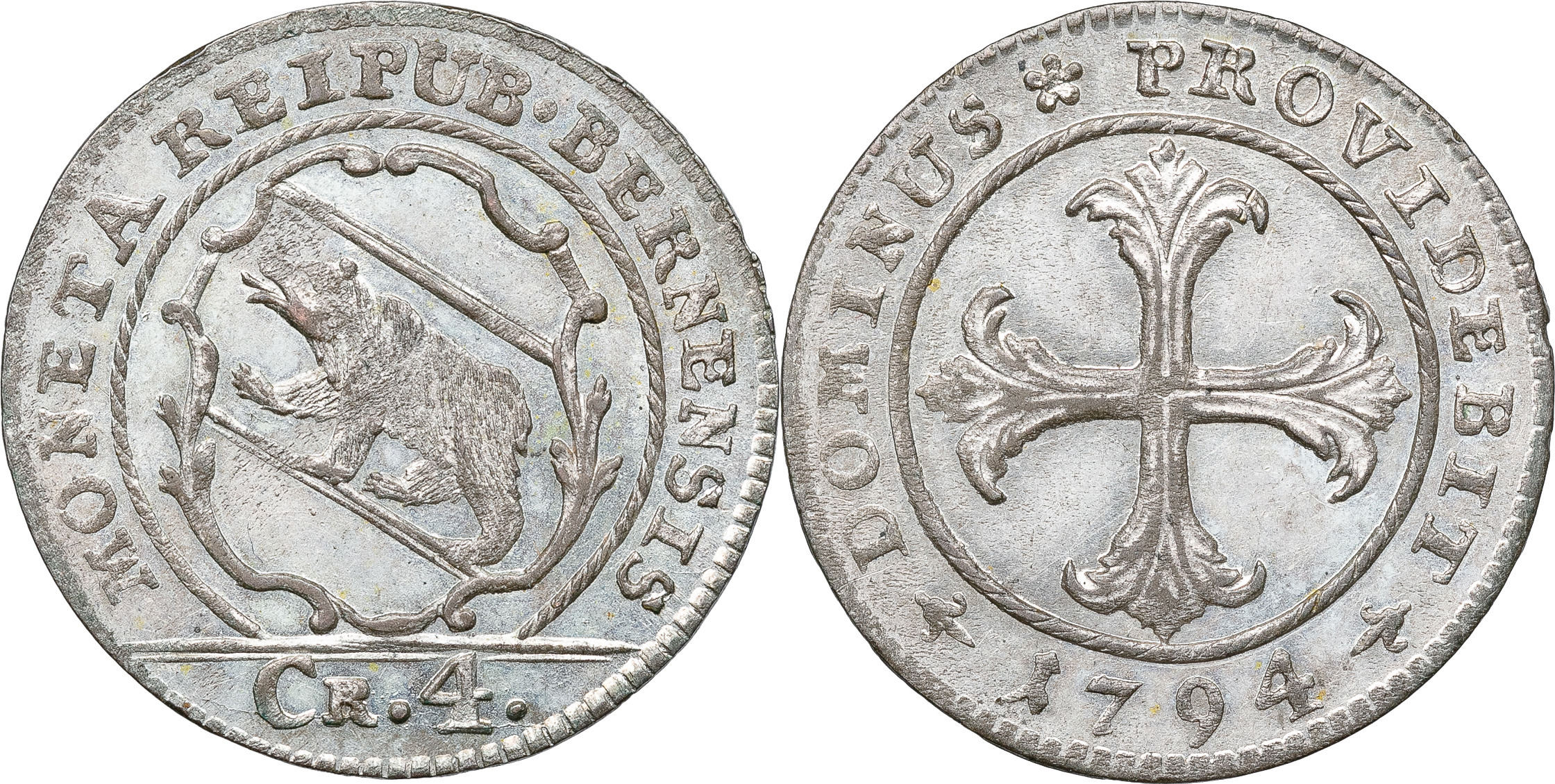 SCHWEIZ / SWITZERLAND. BERN. Batzen 1794. Divo/Tobler 524o. 2,69 g. Praktexemplar med full stämpelglans. Choice with full mint lustre.