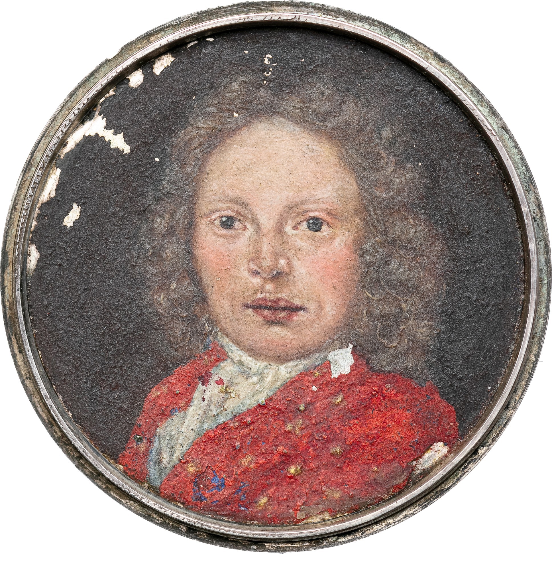 TYSK-ROMERSKA RIKET-ÖSTERRIKE / THE HOLY GERMAN EMPIRE-AUSTRIA. Leopold I (1657-1705). Skruvtaler utan årtal. Frånsidans insida med samtida målning av herre i röd rock. 11,92 g. Bristning. Målningen med smärre färgbortfall. Planchet crack. Painting with minor losses.