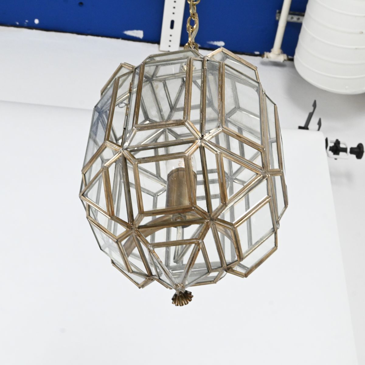 Taklykta, mässing och glas