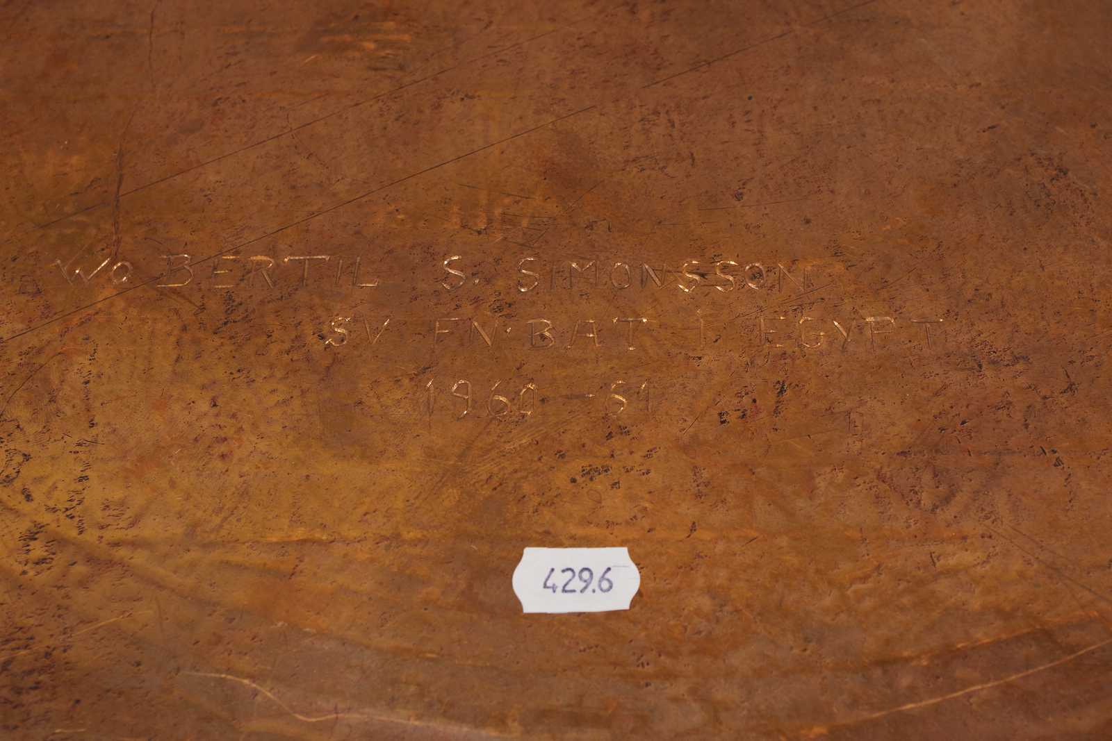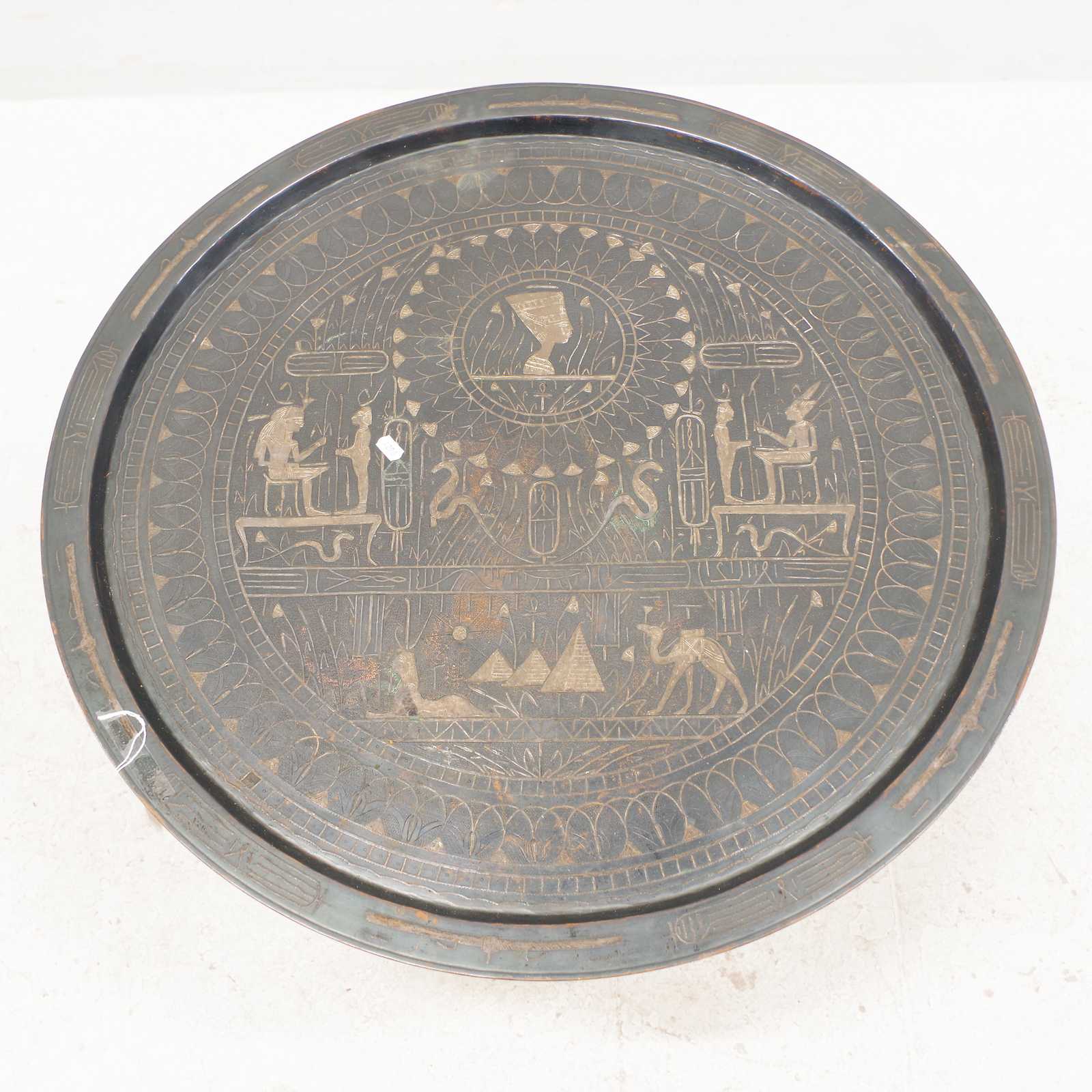 RÖKBORD med kopparbricka, egyptisk dekor, H: 46cm D: 70cm
