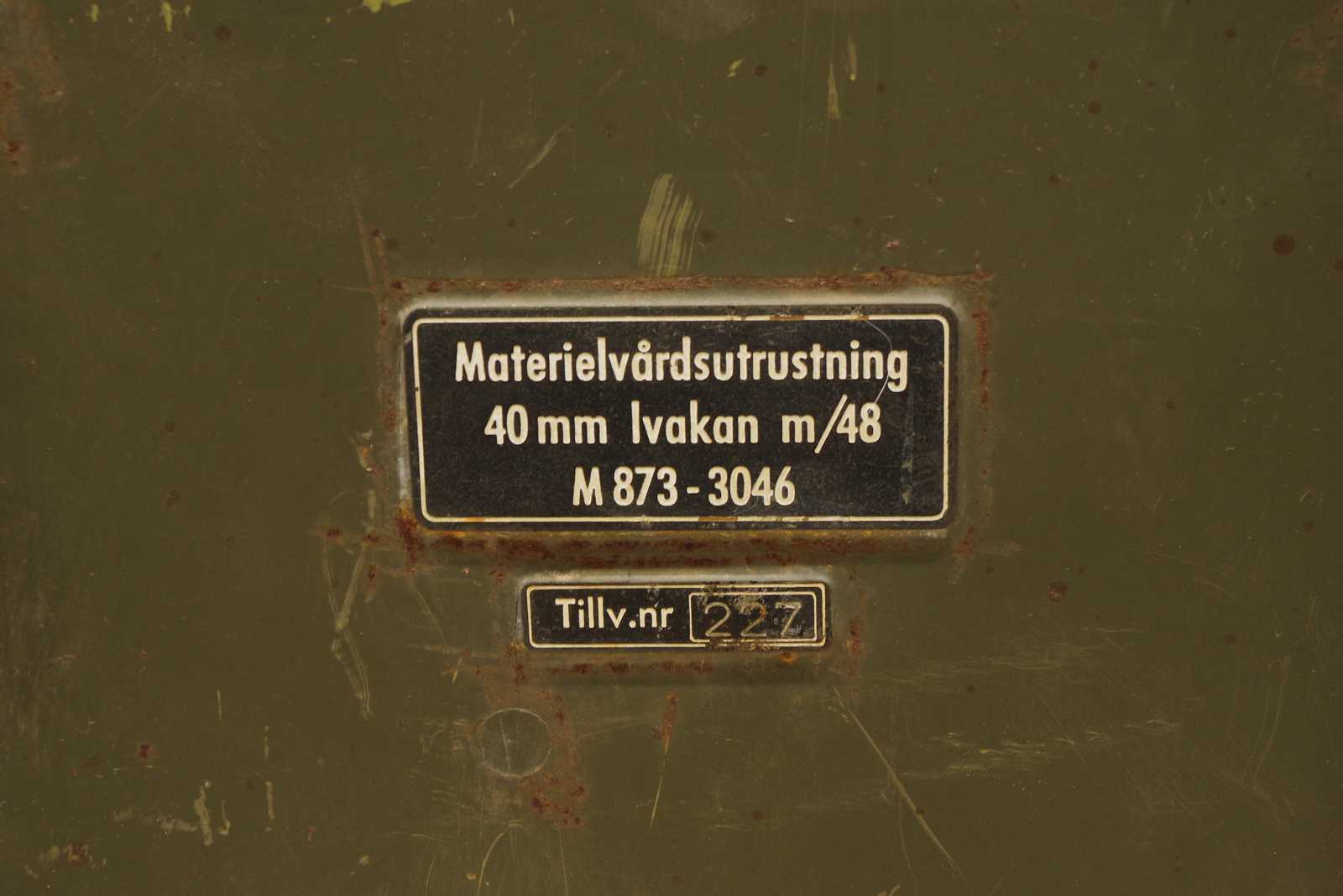 Bilder MILITÄRLÅDA "Materielvårdsutrusning 40mm lvakan m/48 M873-3046". H:31x 90x 32cm (rost)
