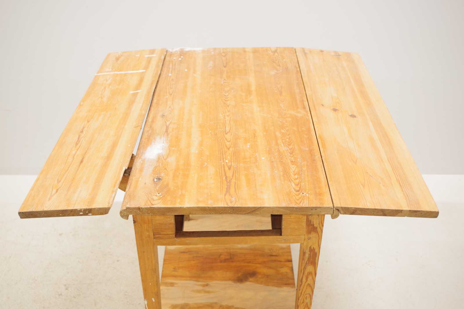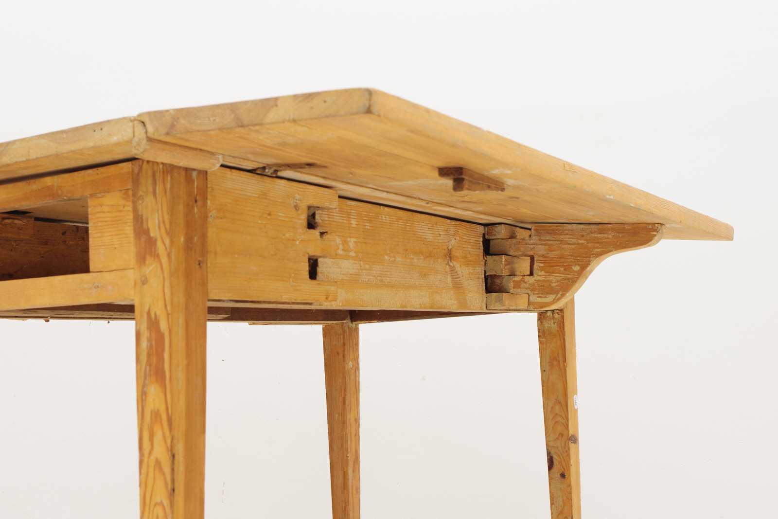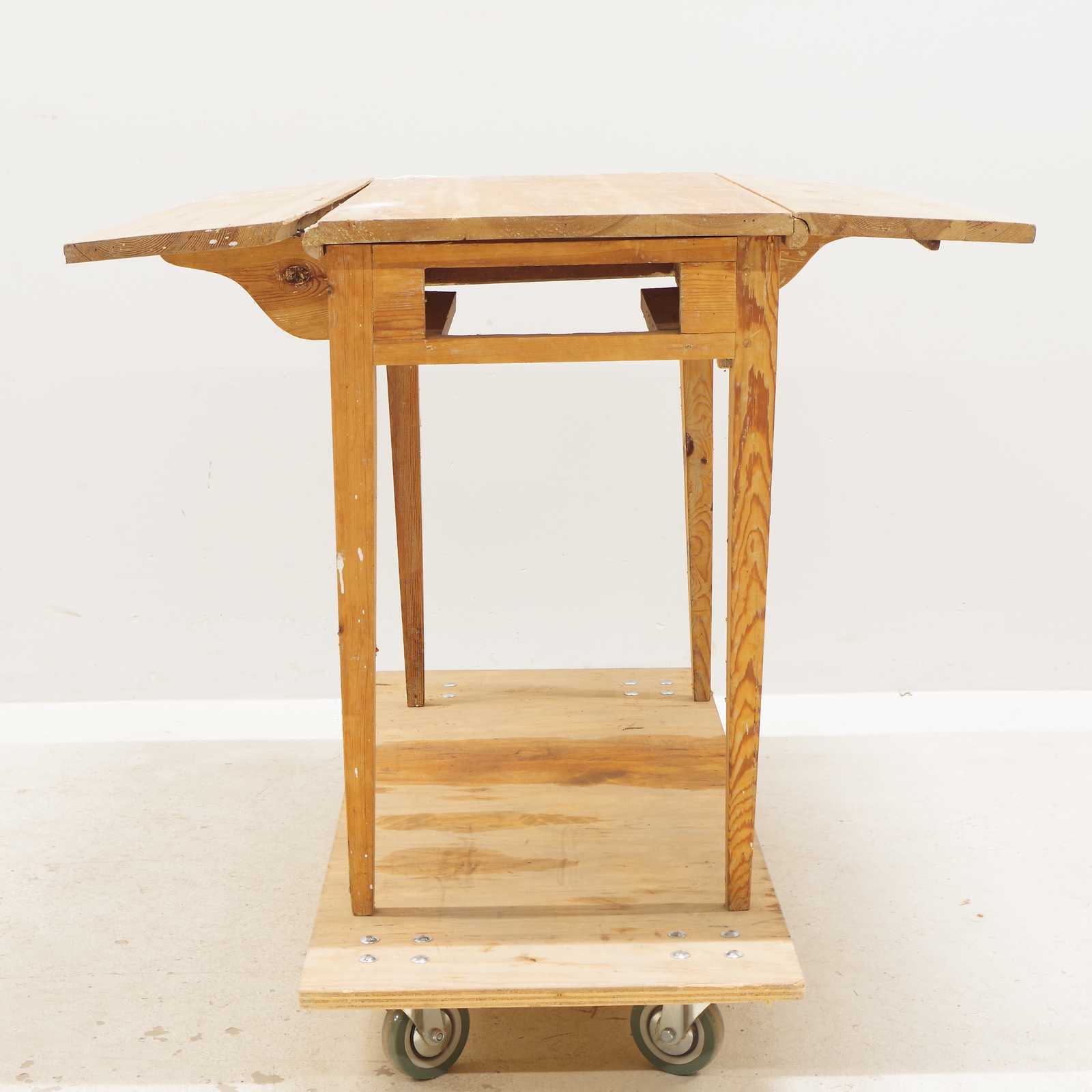Auktioner KLAFFBORD med låda, 1800 tal. H:73x 96x 46 + 2st klaffar 22/24cm (slitage, skador, beslag lossnat från bordsskiva, låda saknas)