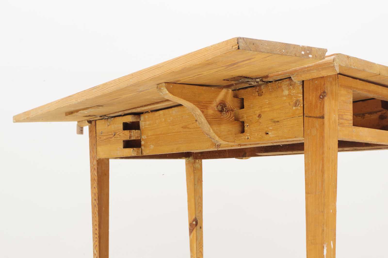 Bilder KLAFFBORD med låda, 1800 tal. H:73x 96x 46 + 2st klaffar 22/24cm (slitage, skador, beslag lossnat från bordsskiva, låda saknas)