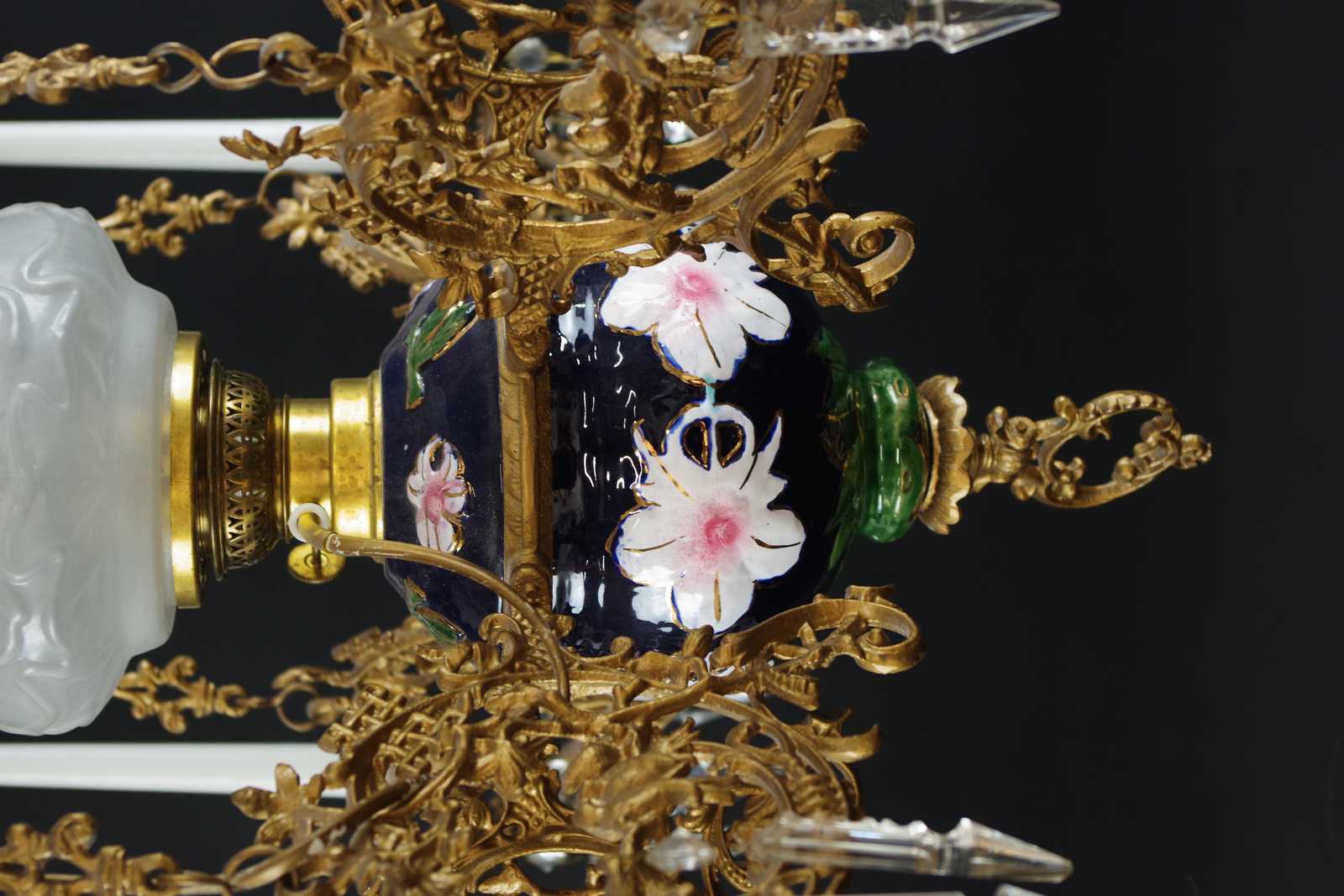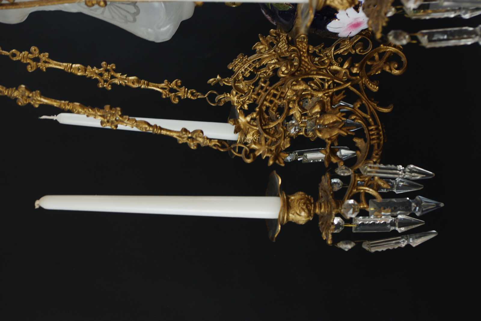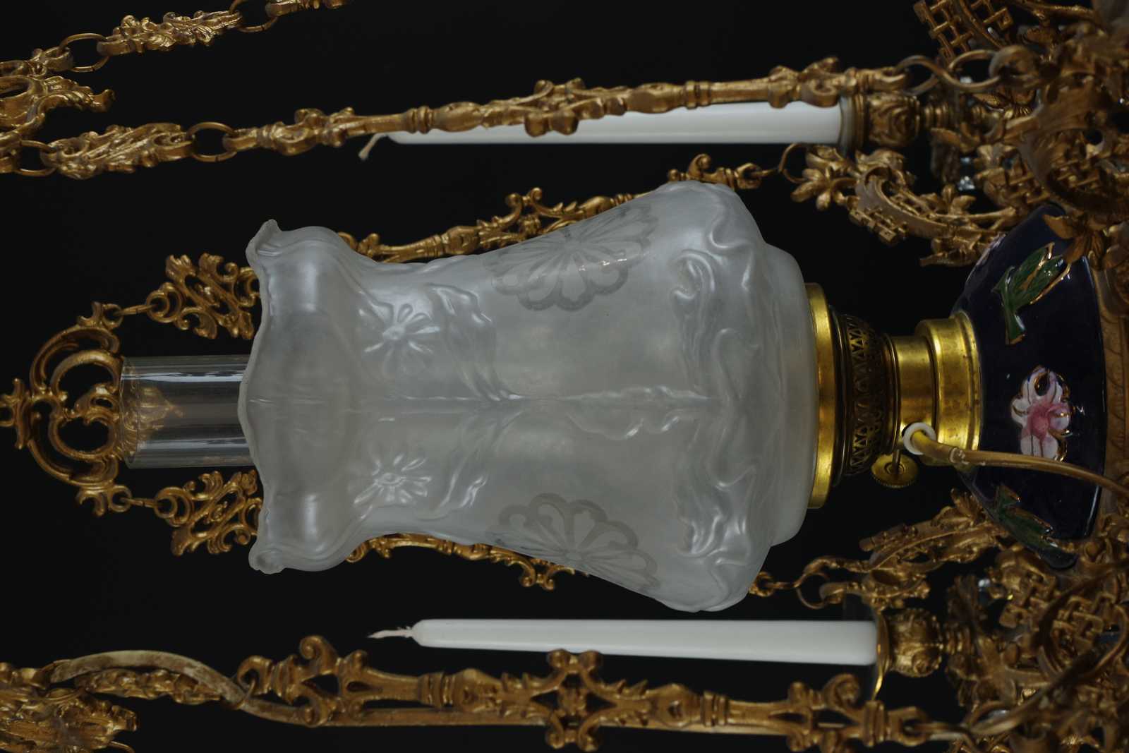 Bilder TAKFOTOGENLAMPA elektrifierad, 6st armar för levande ljus, 1900 tal. D:58cm (hissvikt saknas)