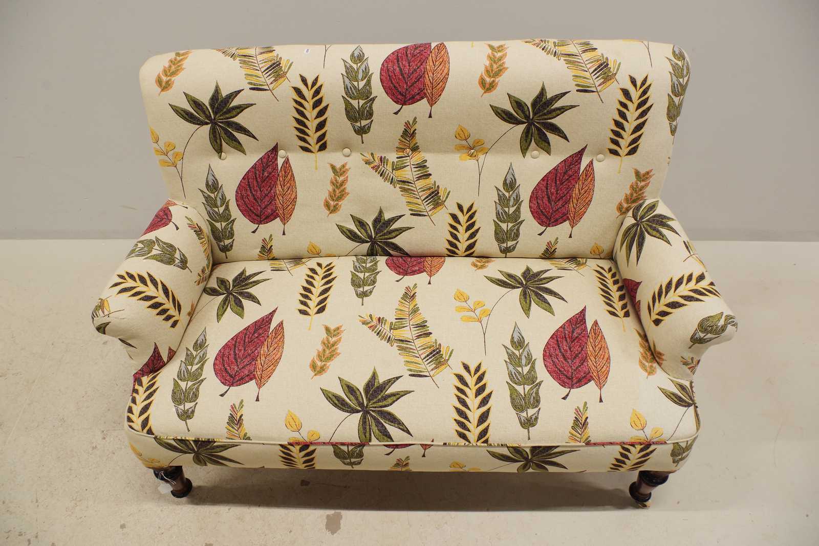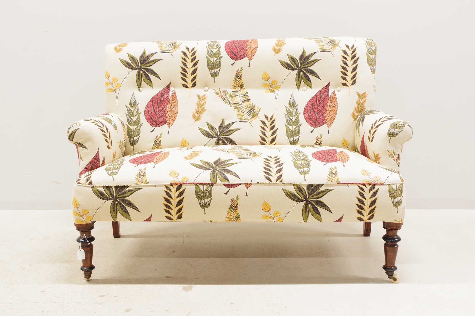 SOFFA 18-1900 tal, med hjul på frambenen, senare omklädd. B:135cm