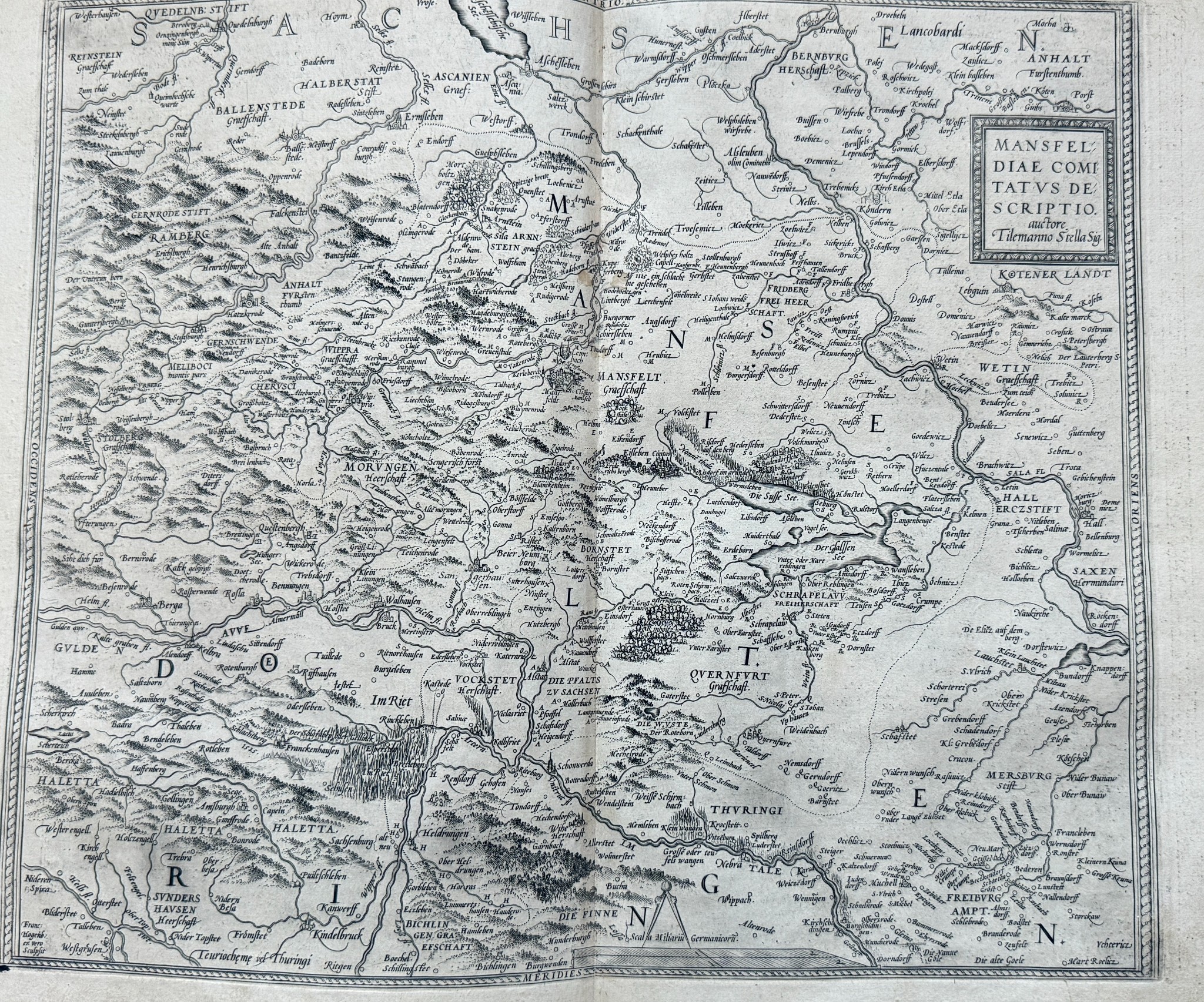 Bilder Abraham Ortelius (1527–1598) – Map of Germany - Mansfeldiae, Comitatus Descriptio / Description of the County - Engraving