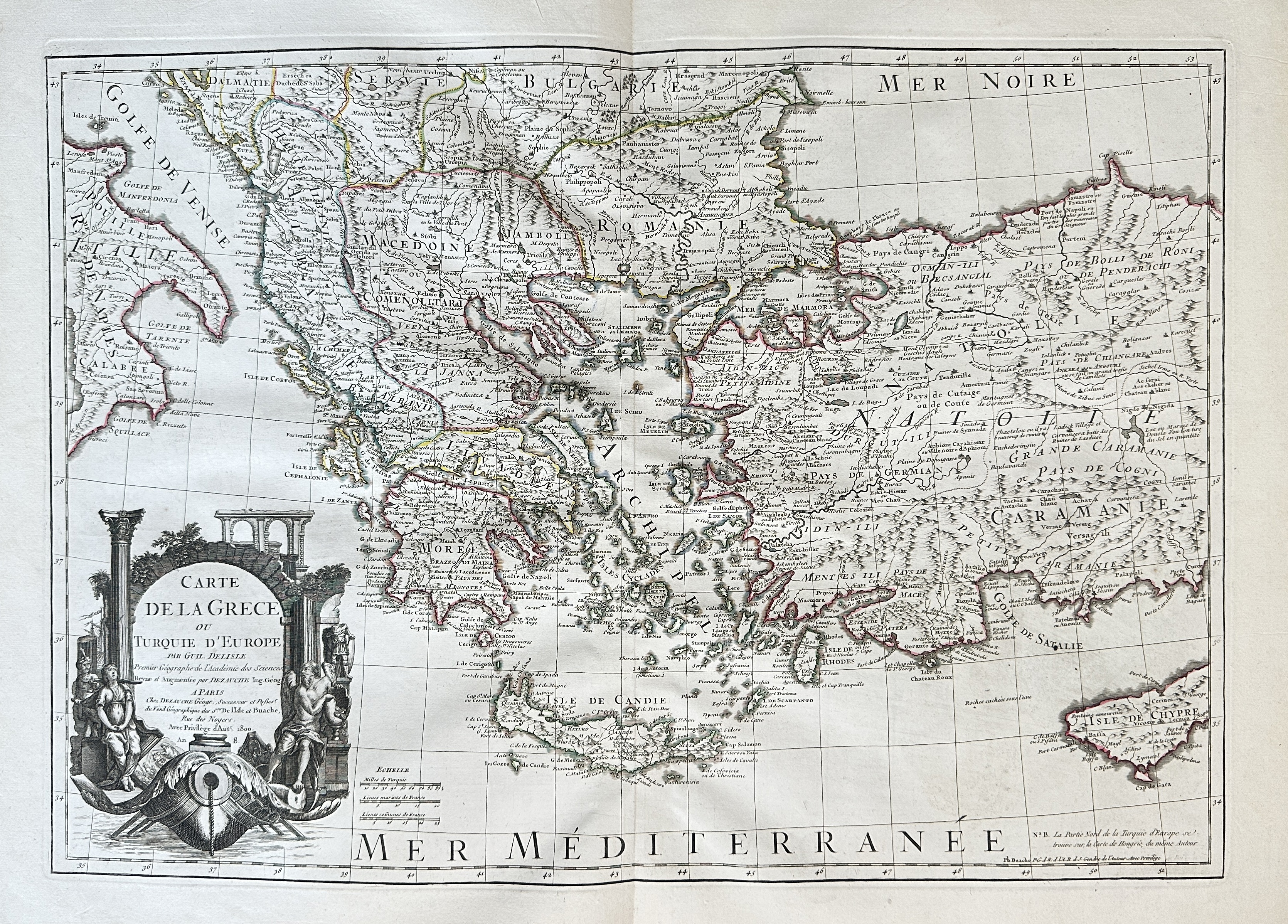 Bilder Jean Baptiste Bourguignon d'Anville (1697–1782) – Map of Greece and European Turkey / Carte de la Grèce et de la Turquie d’Europe – Hand-Colored Copperplate Engraving (1784)