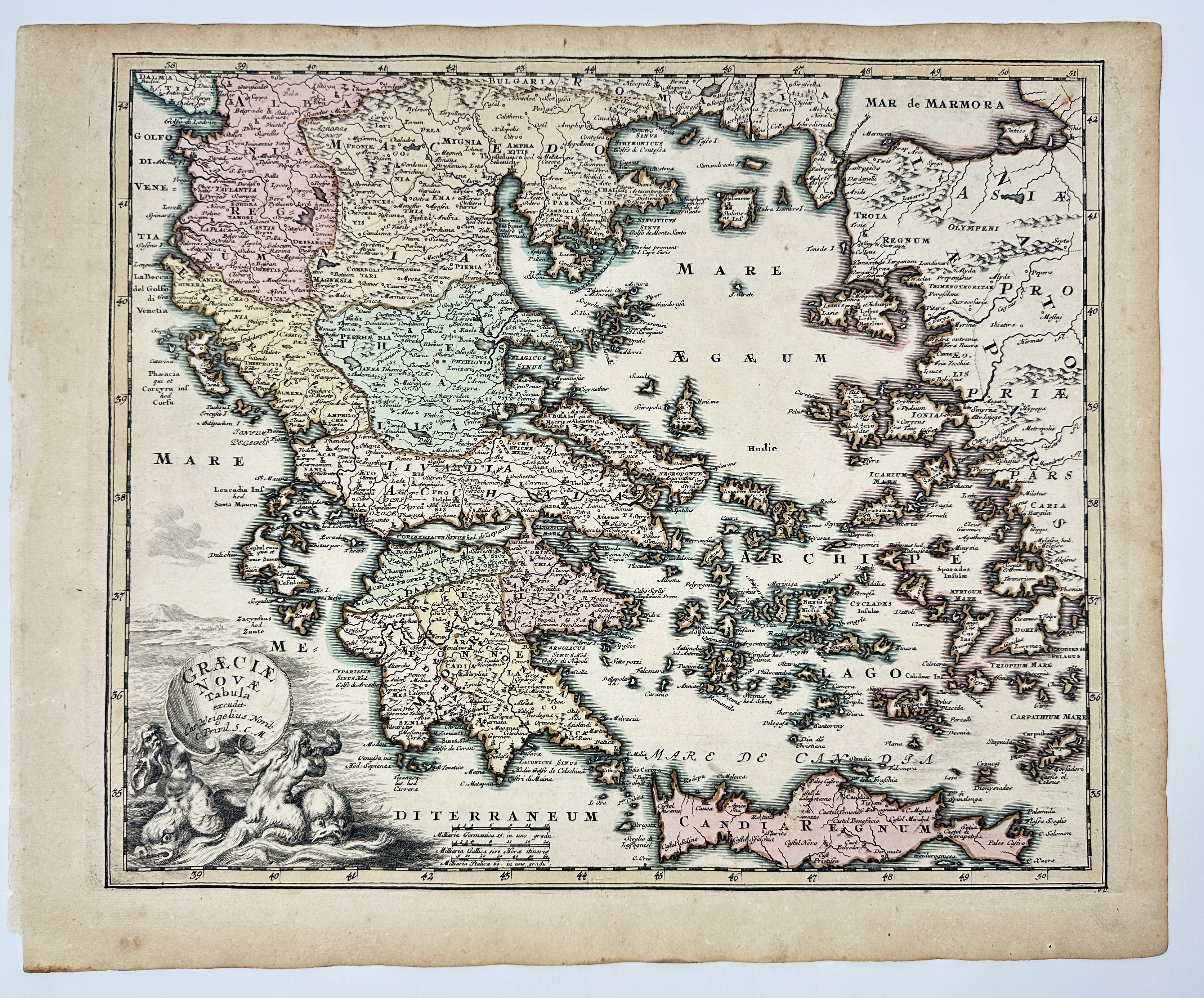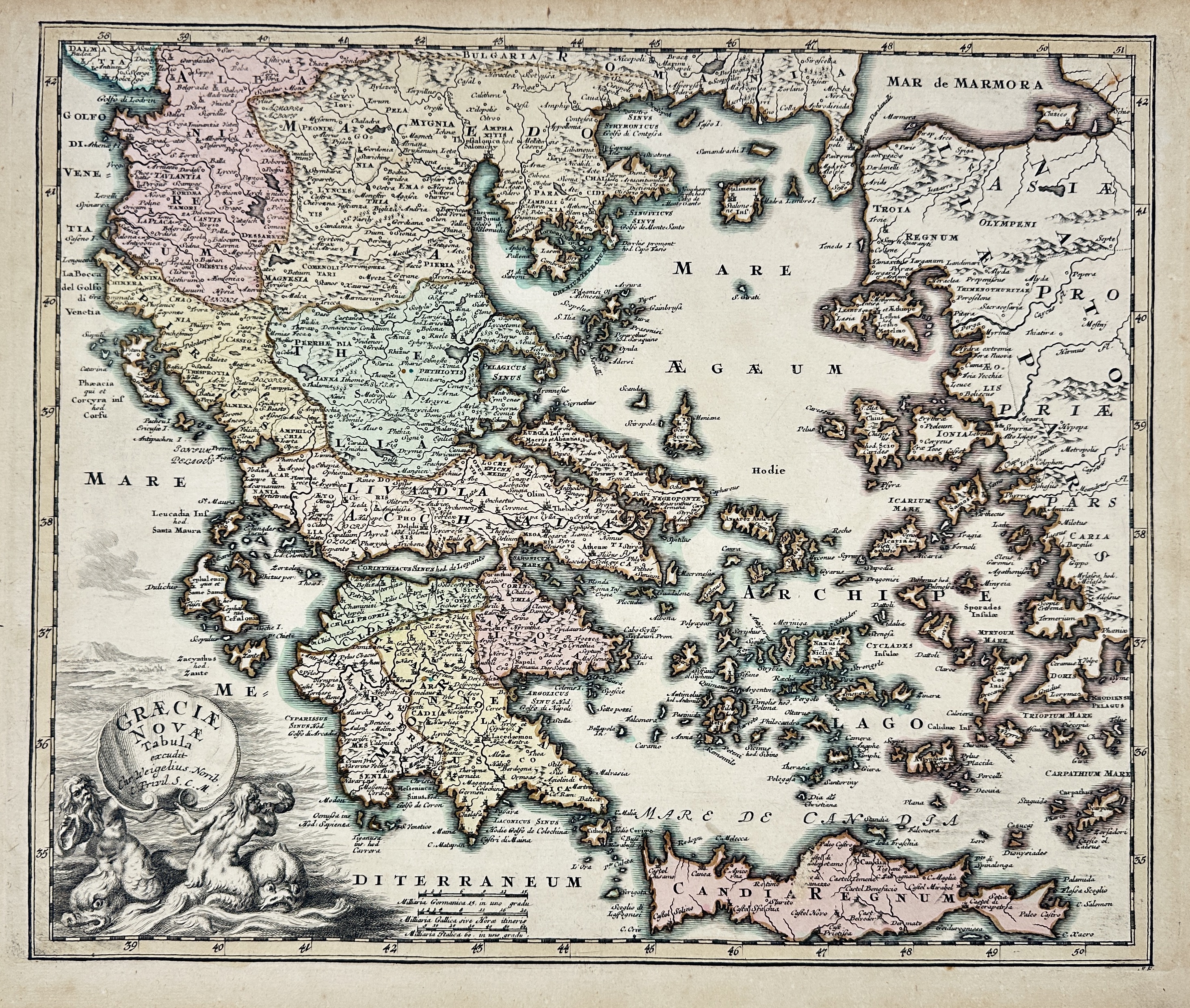 Bilder Christoph Weigel (1654–1725) – Map of Greece / Graeciae Nova Tabula – Hand-Coloured Copper Engraving (c.1720)