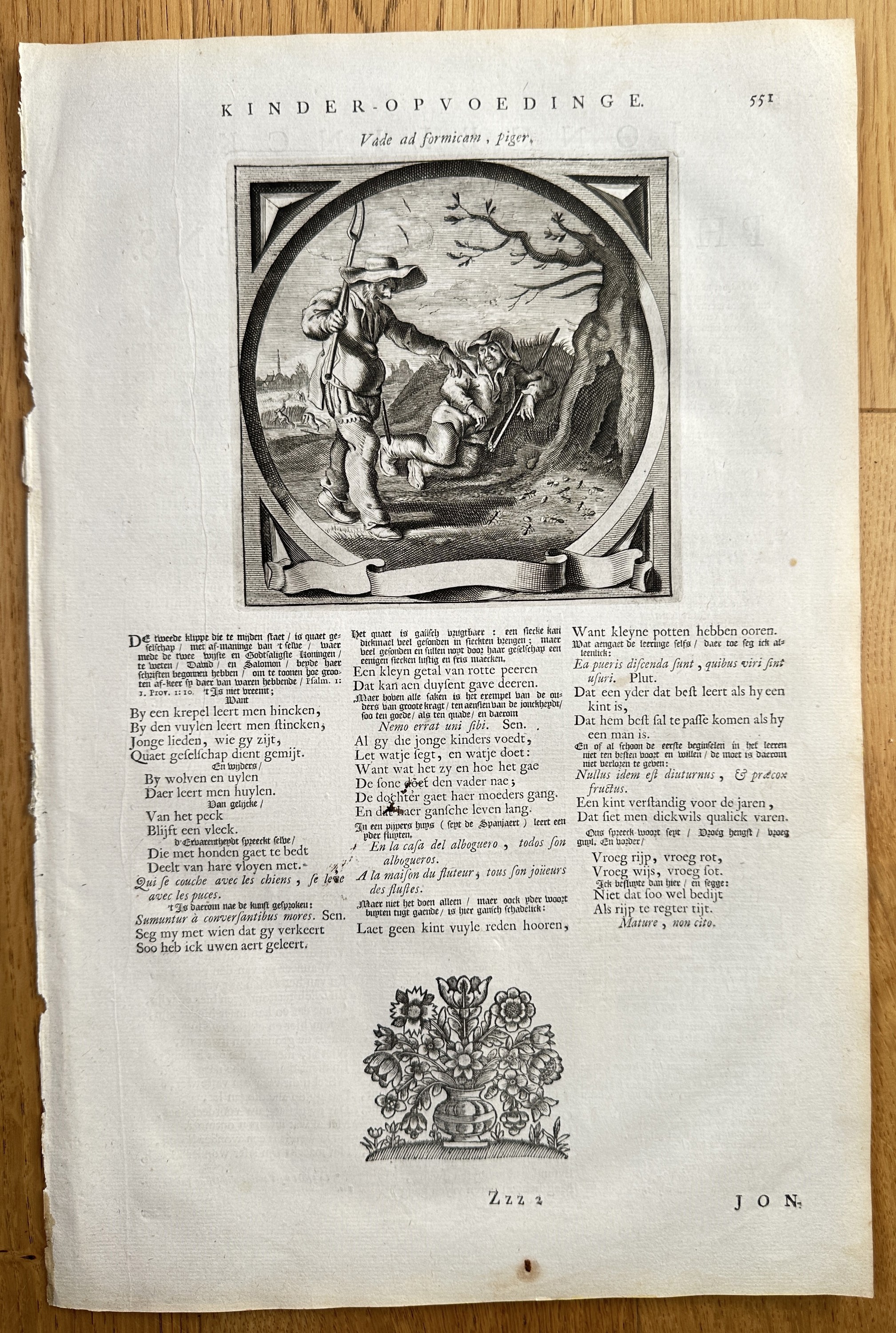 Bilder Jacob Cats (1577–1660) – Child-Rearing: Go to the Ant, Sluggard – Engraving (Circa 1632)