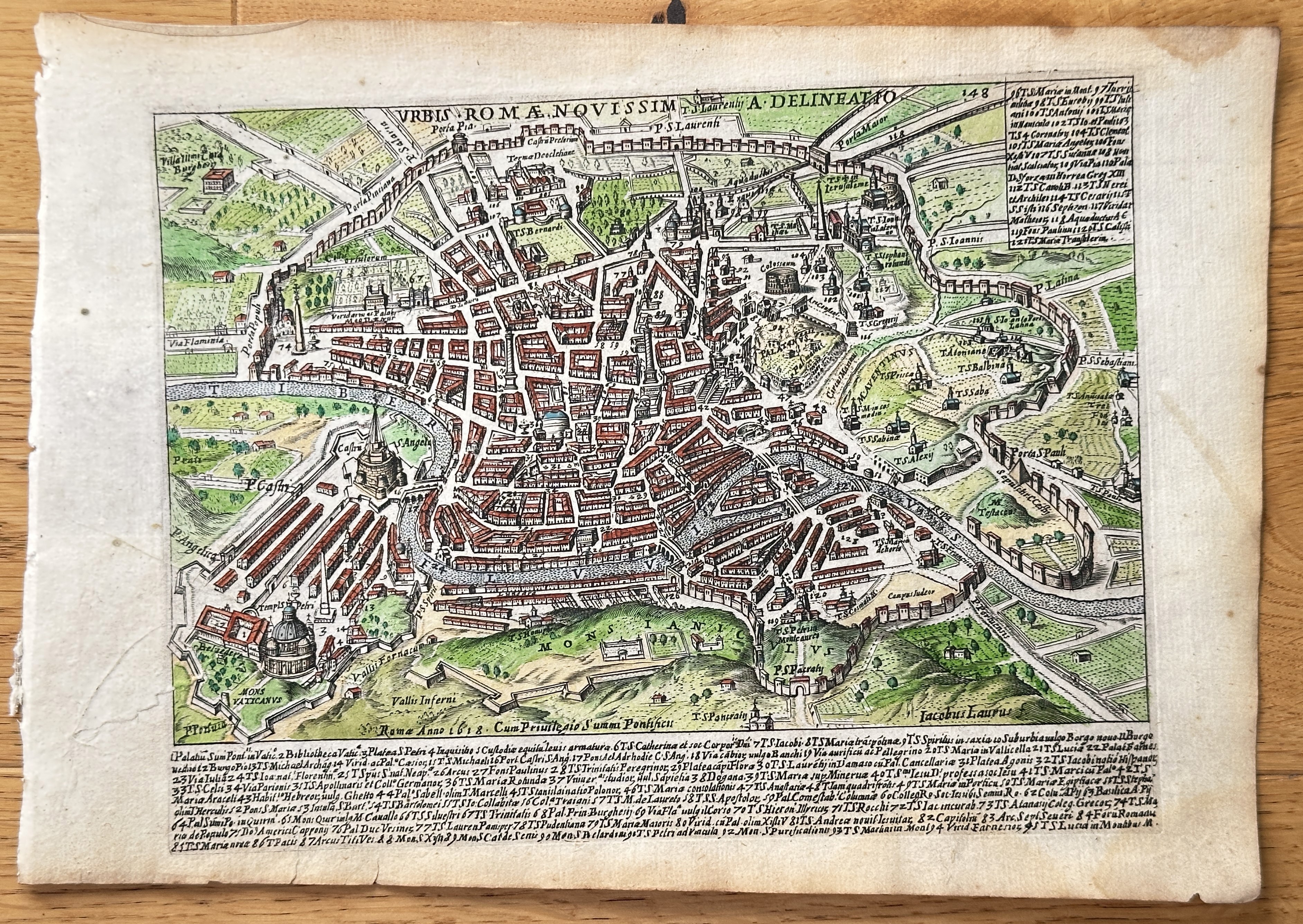 Bilder Giacomo Lauro (1561–1645/50) – Map of the City of Rome (Latest Delineation) – Hand-coloured Engraving (Circa 1625)