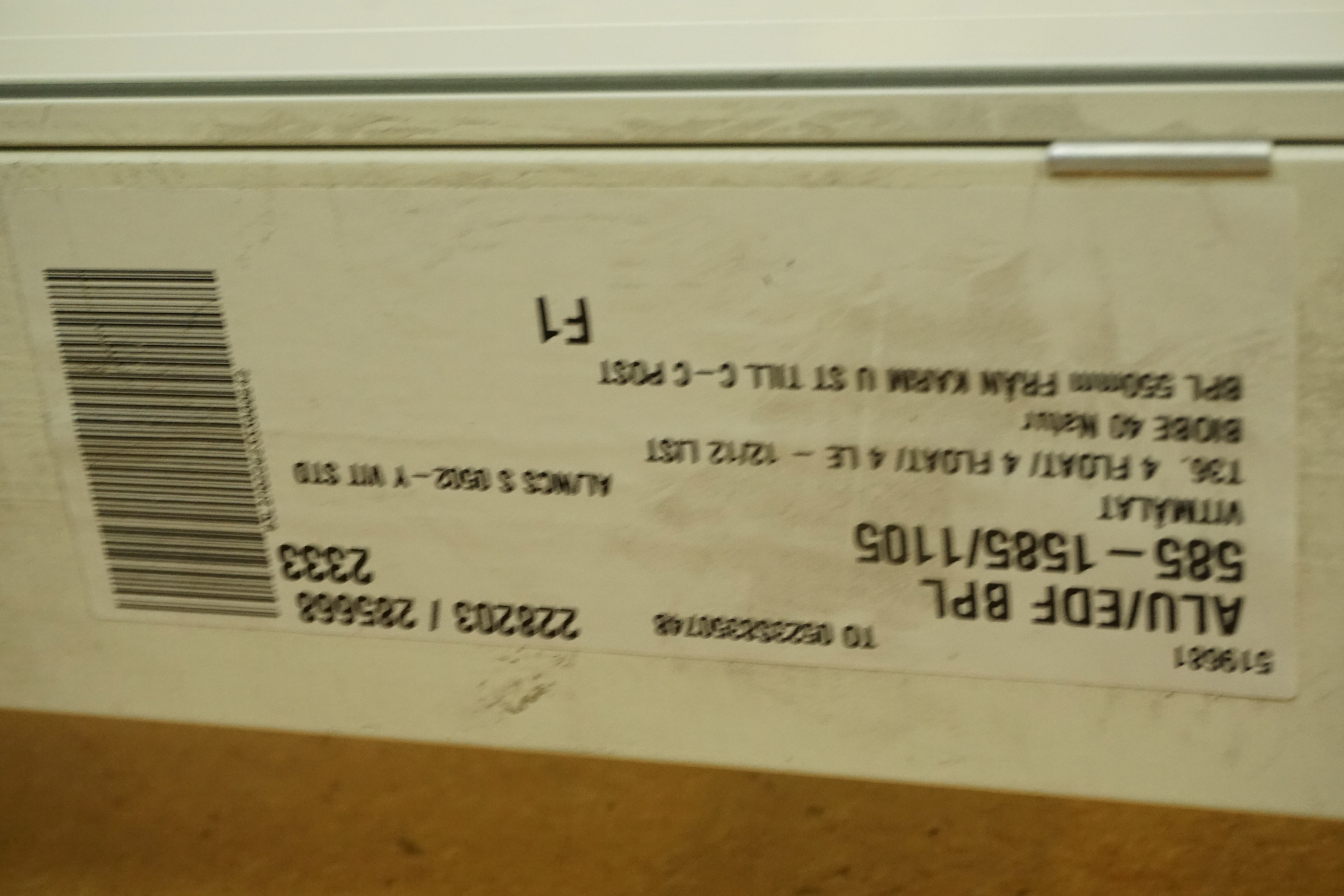 ALU/EDF BPL 585-1585/1105 Vitmålat T36 4 Float/ 4 Float/ 4 LE - 12/12 List Biobe 40 Natur BPL 550 Från Karm U ST Till C-C Post