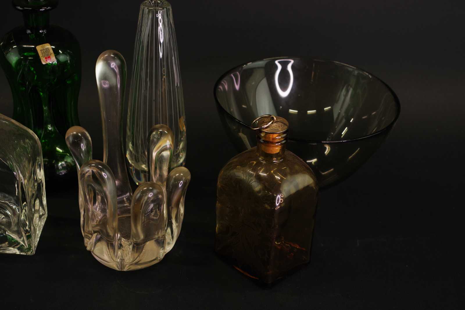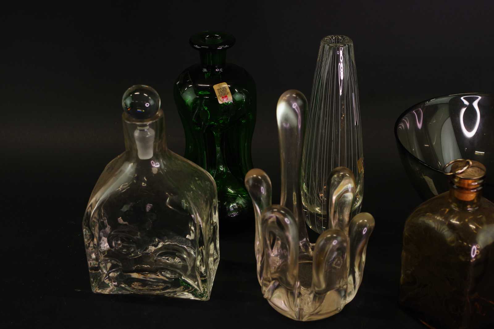 Bilder LJUSLYKTA, FLASKOR, VAS Johansfors H:20,5 cm, SKÅL "Fuga" Orrefors, KLUCKFLASKA Holmegaard