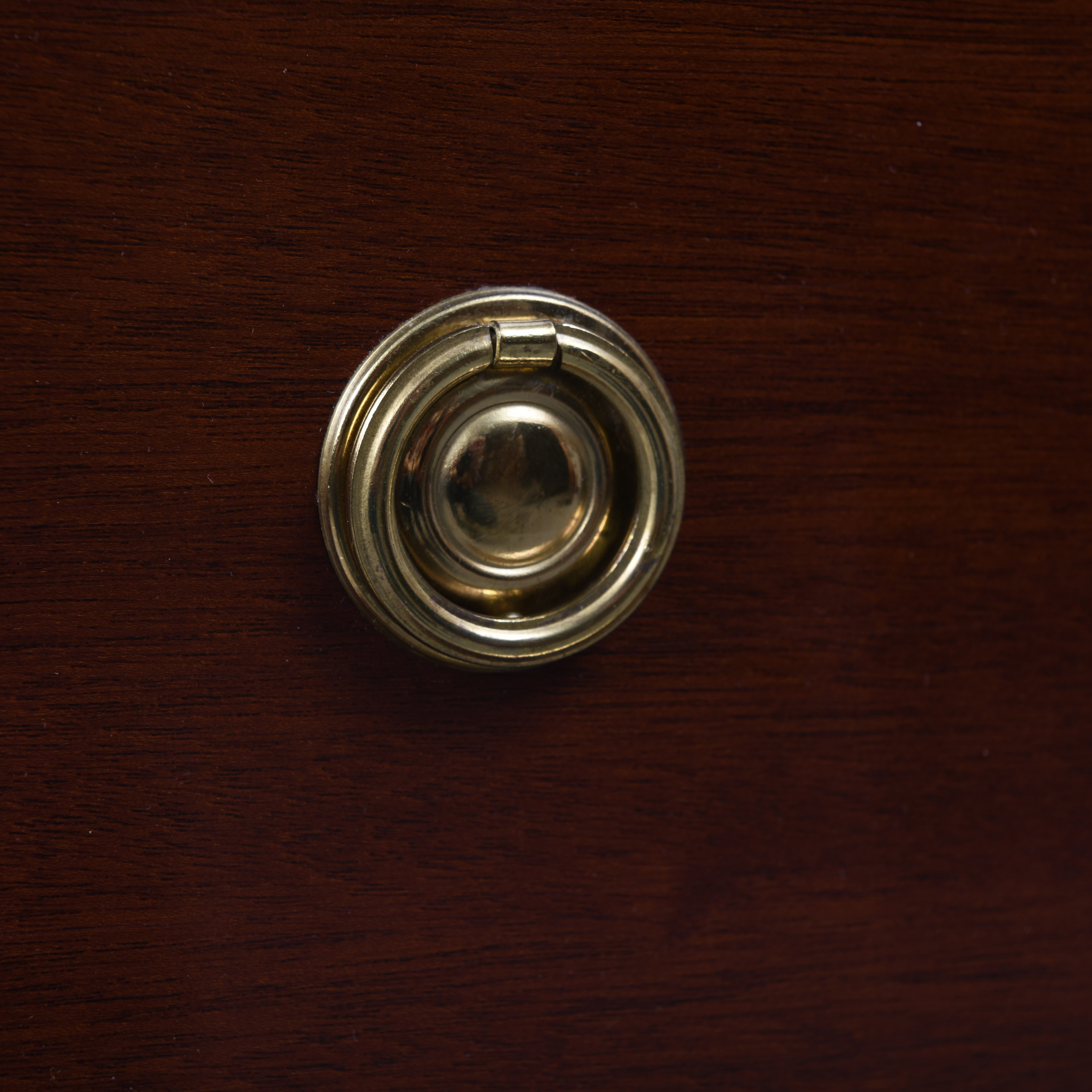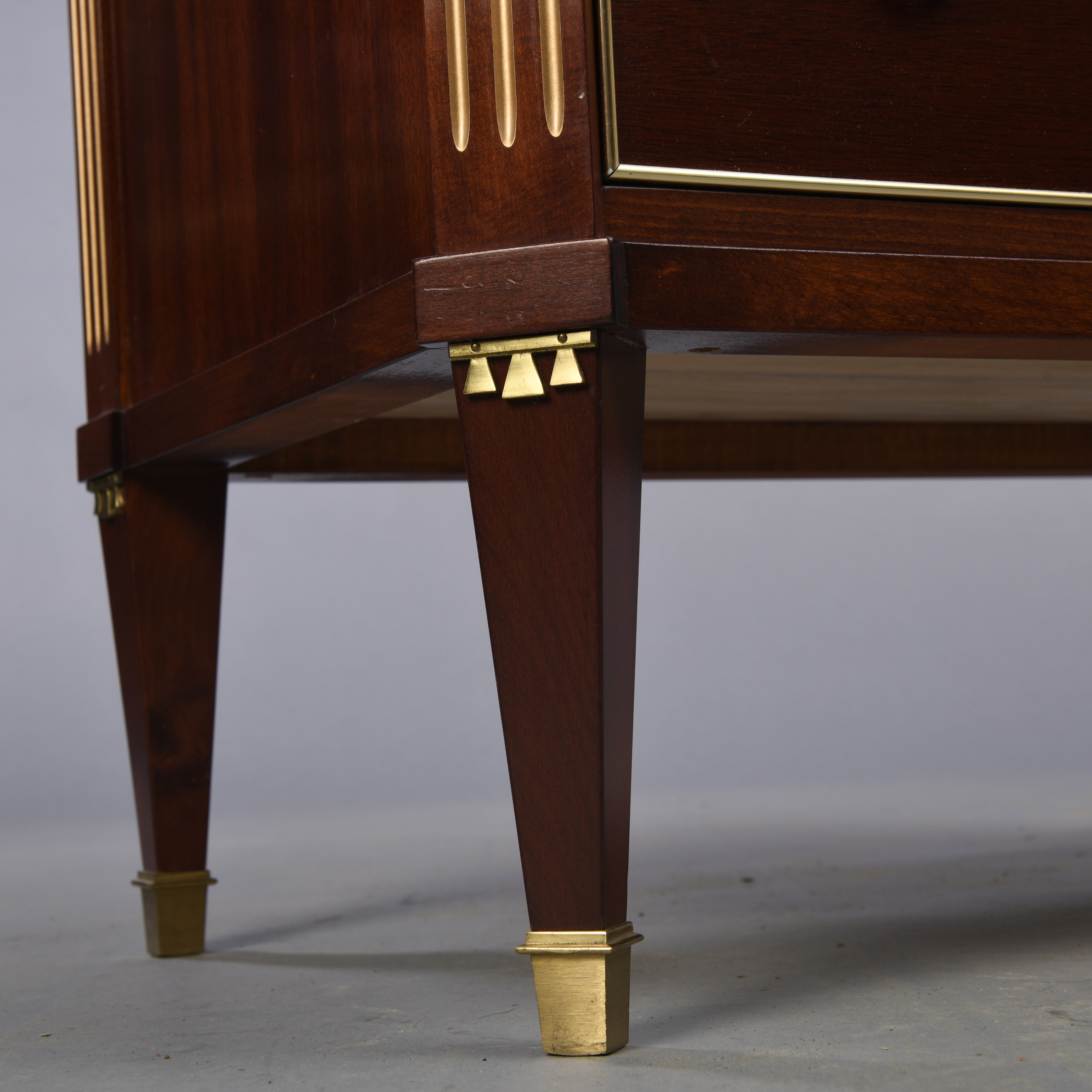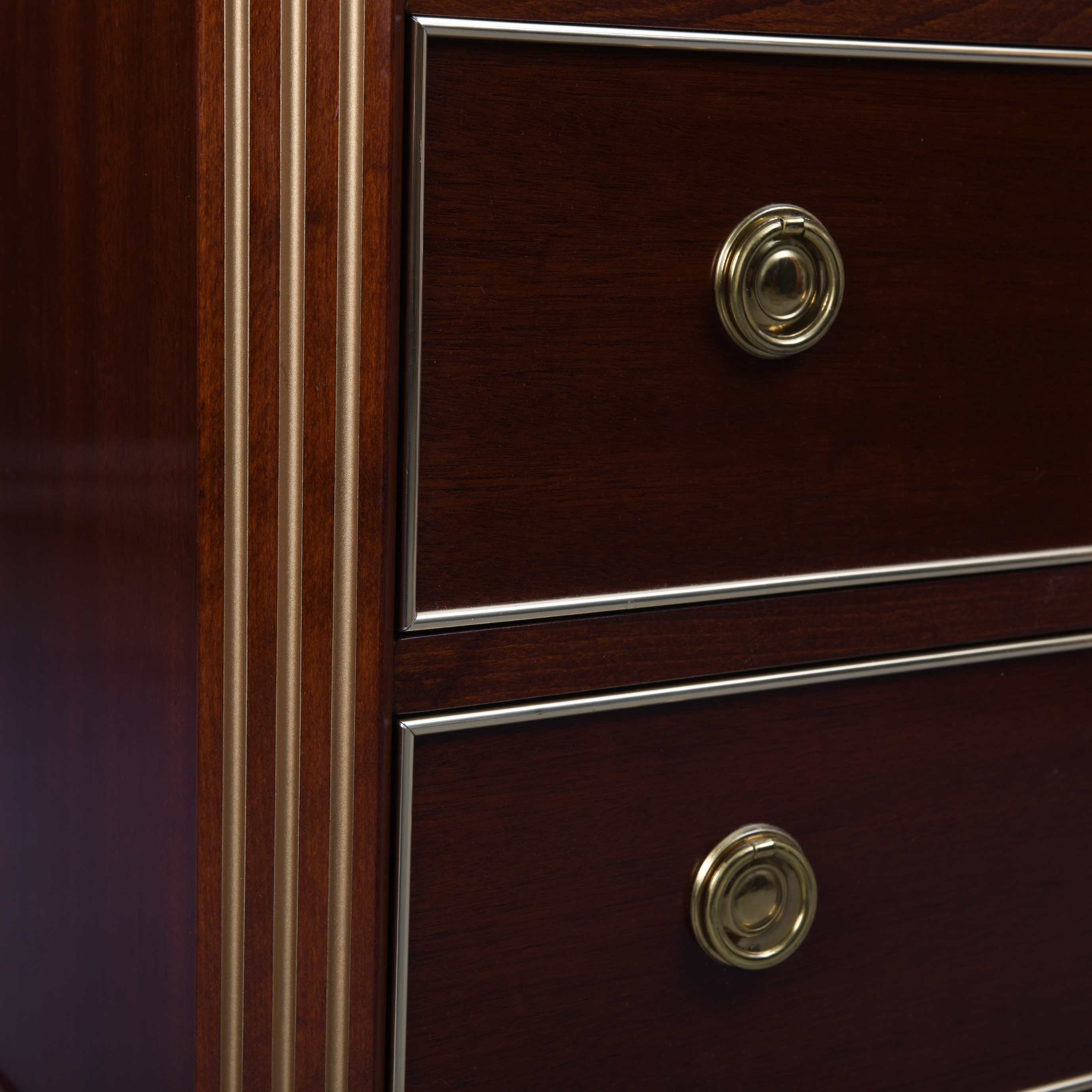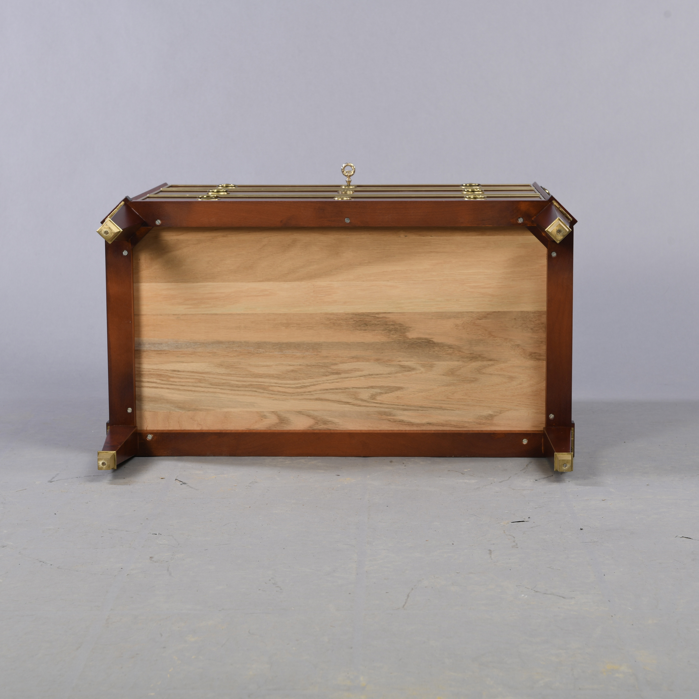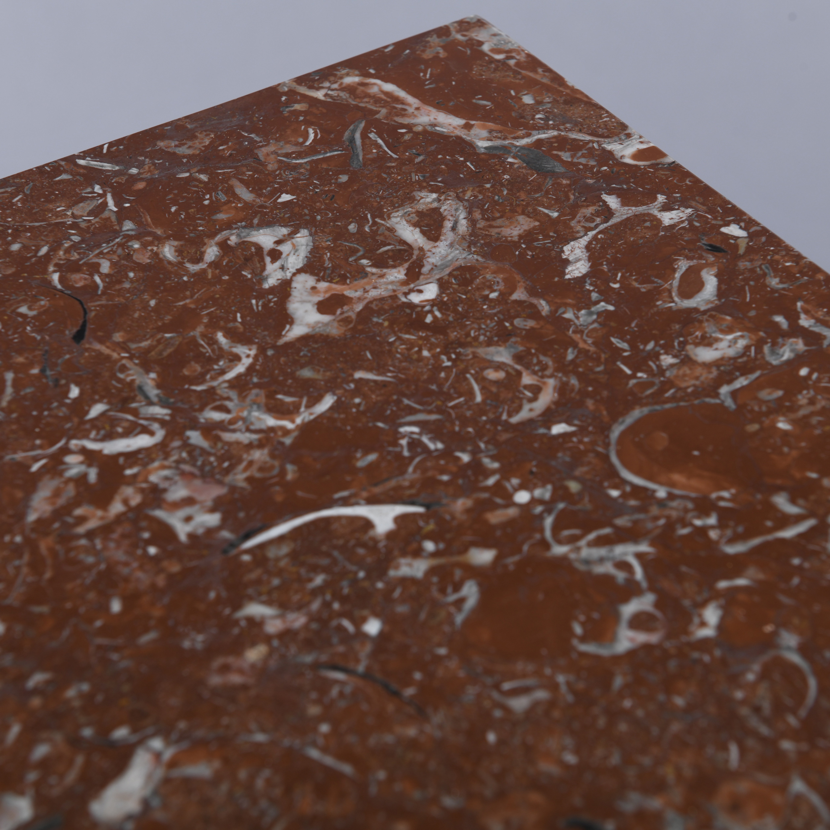 Fanerad i mahogny, skiva i marmor, beslat samt lister i mässing, höjd 75, 78 x 44 cm
