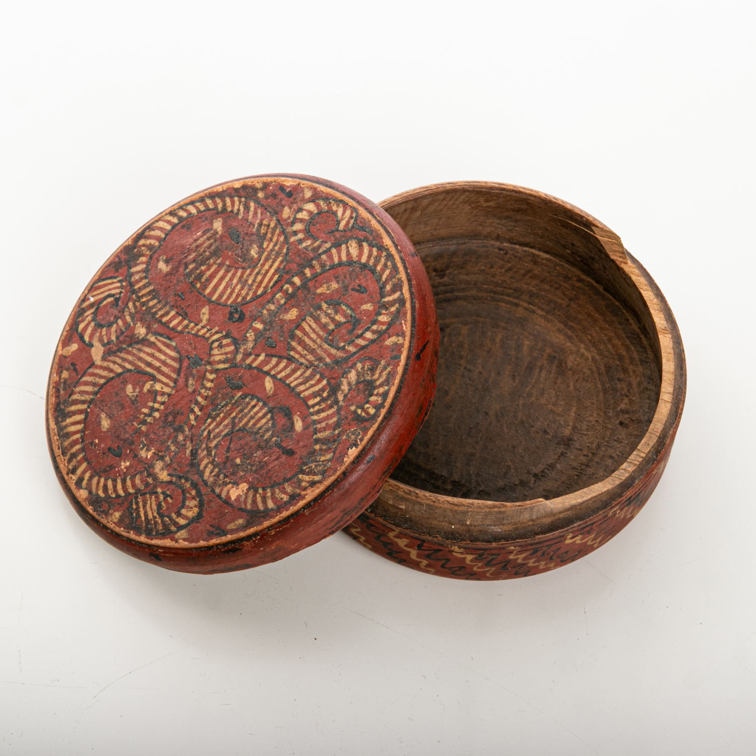 SVARVAD ASK, Västergötland, Sjuhäradsbyggden, solsymbolen, allmoge, streckmålad, 1700-tal.