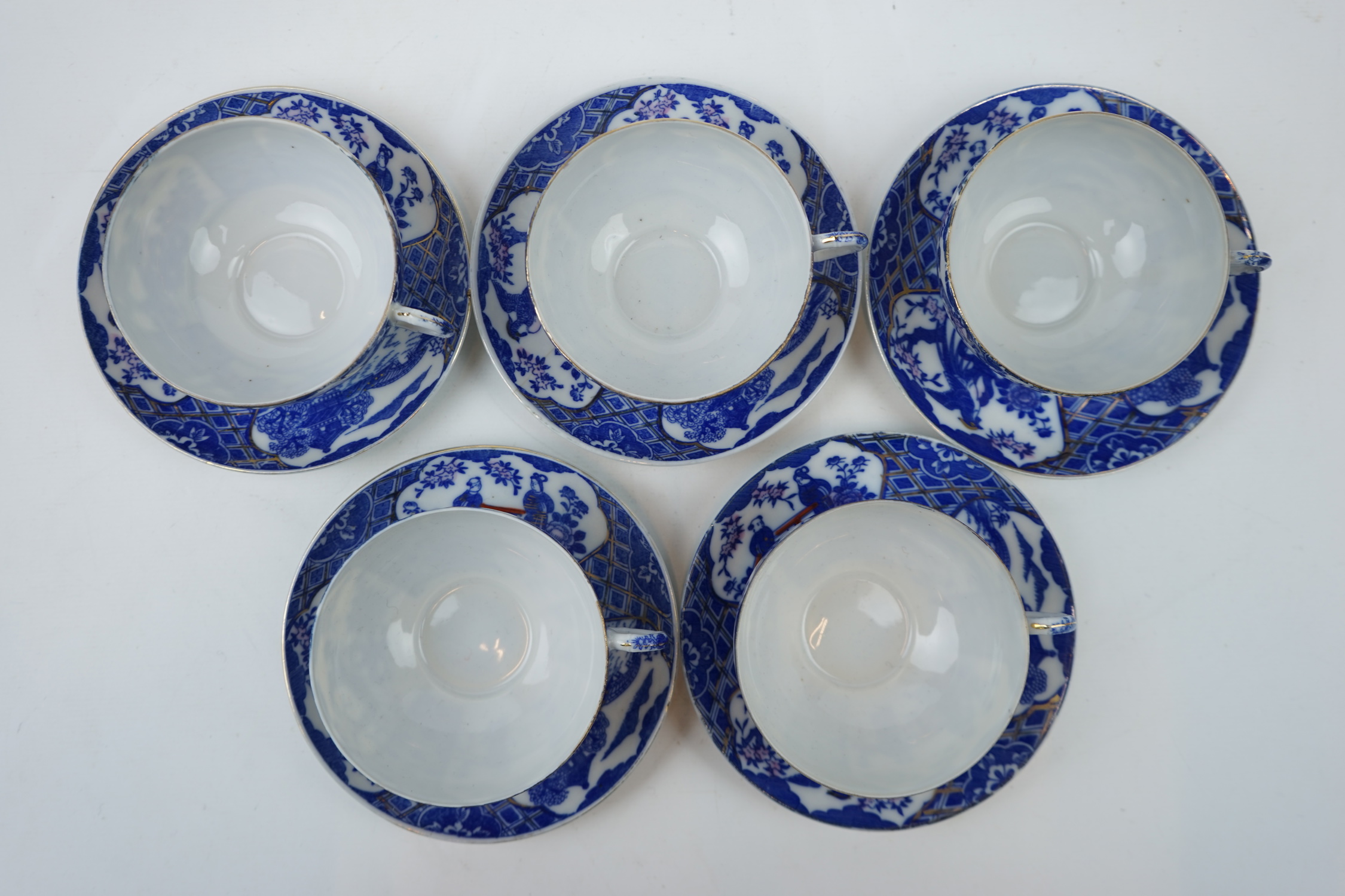 Teservisdelar och assiett, 5 delar, porslin, Japan.