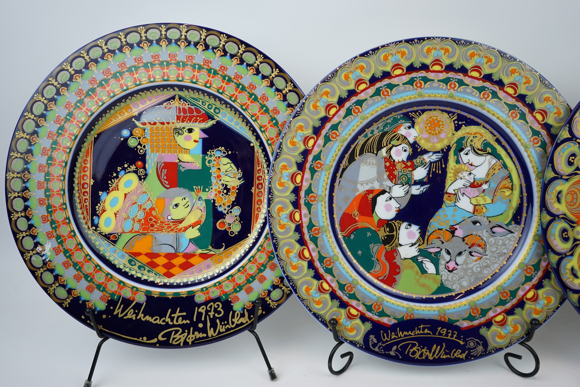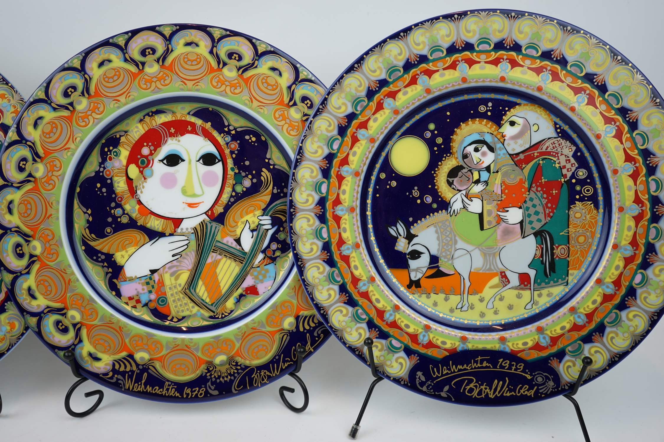 Björn Wiinblad, jultallrikar, 5 st, porslin, ''Weinachtsteller'', Studio-Line, Rosenthal, Tyskland, 1973-1980.