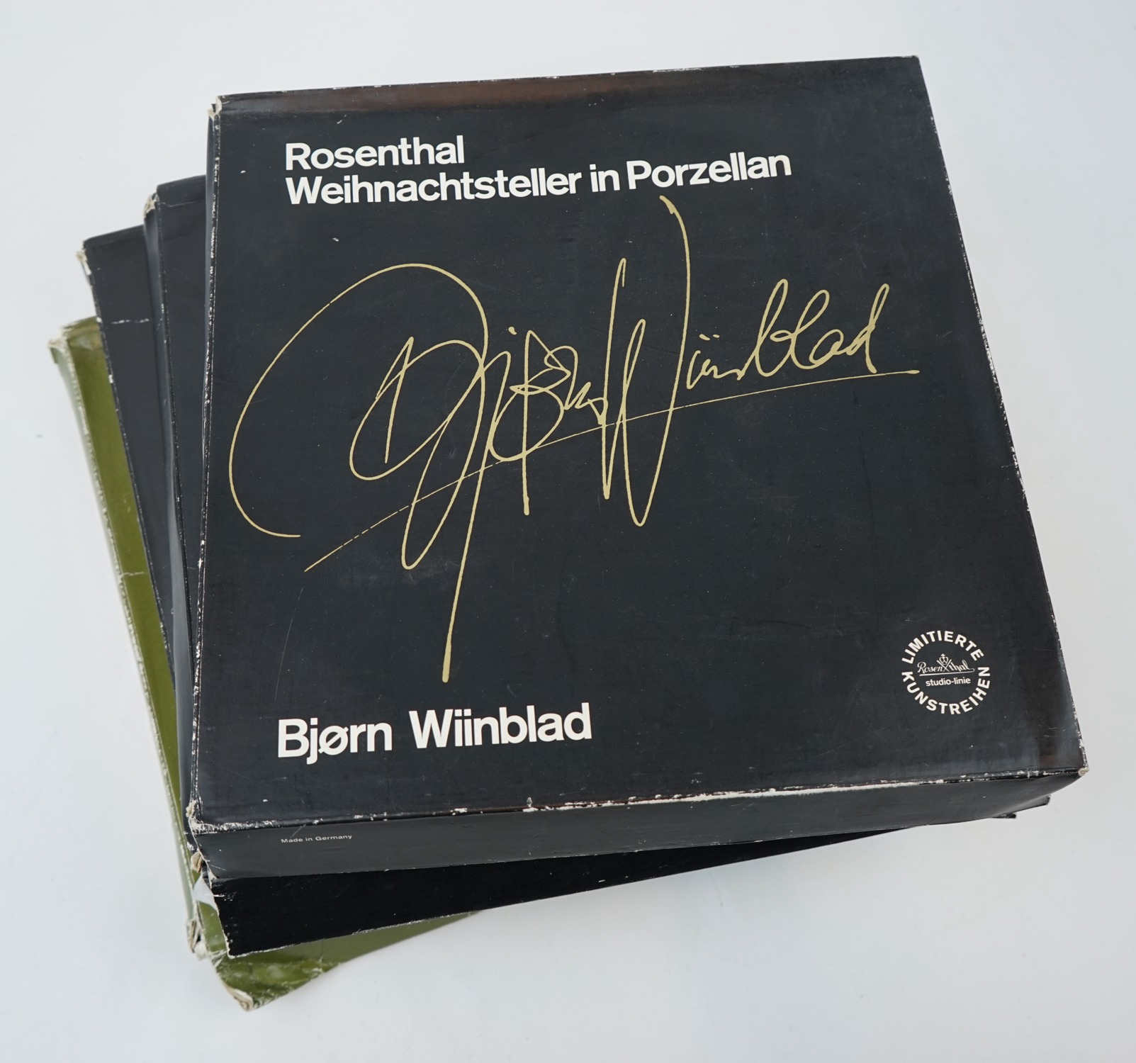 Auktioner Björn Wiinblad, jultallrikar, 5 st, porslin, ''Weinachtsteller'', Studio-Line, Rosenthal, Tyskland, 1973-1980.