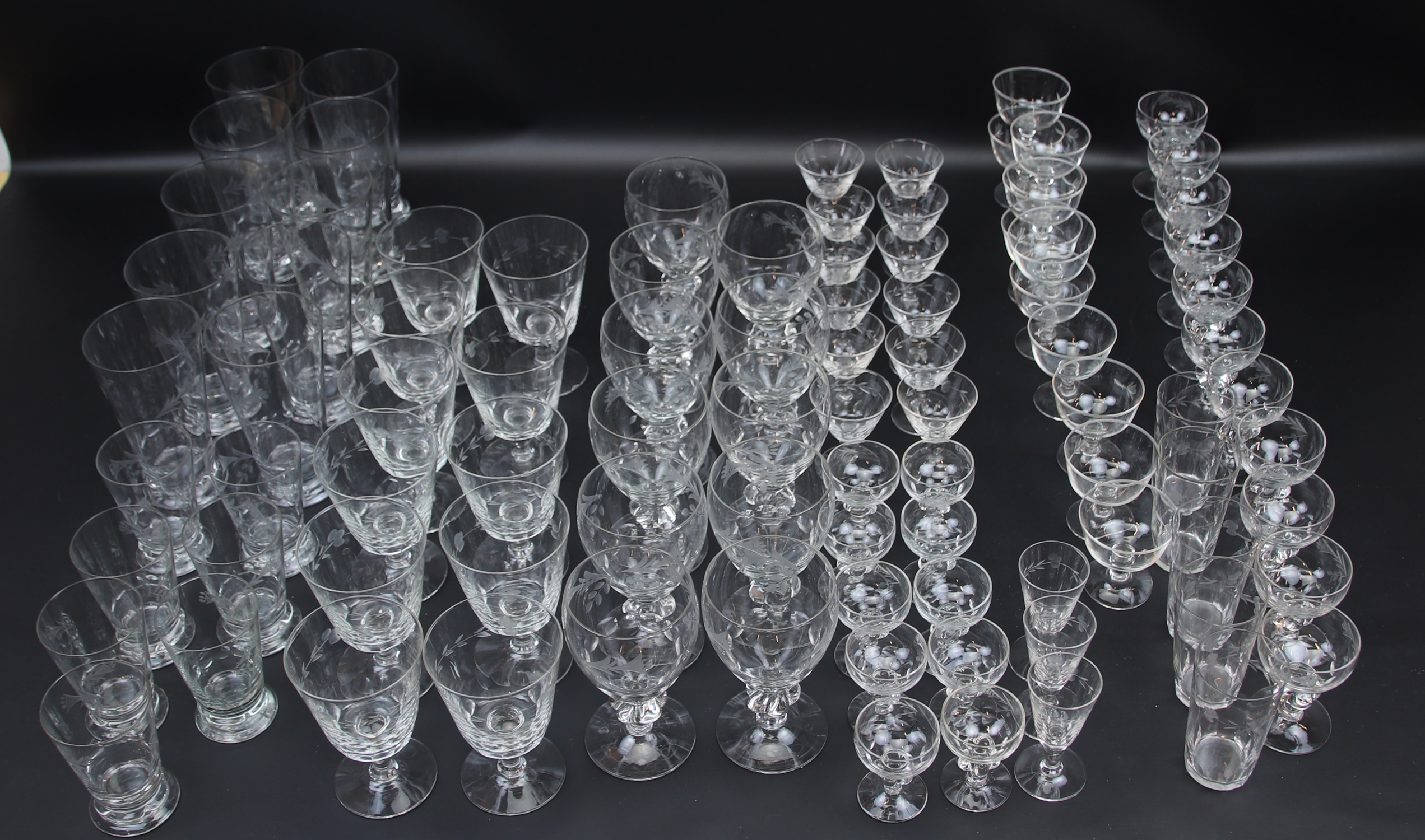 Bilder Glasservisdelar, 91 st, 2 olika serviser, bl.a Trelleborgs glasbruk, 1900-tal.