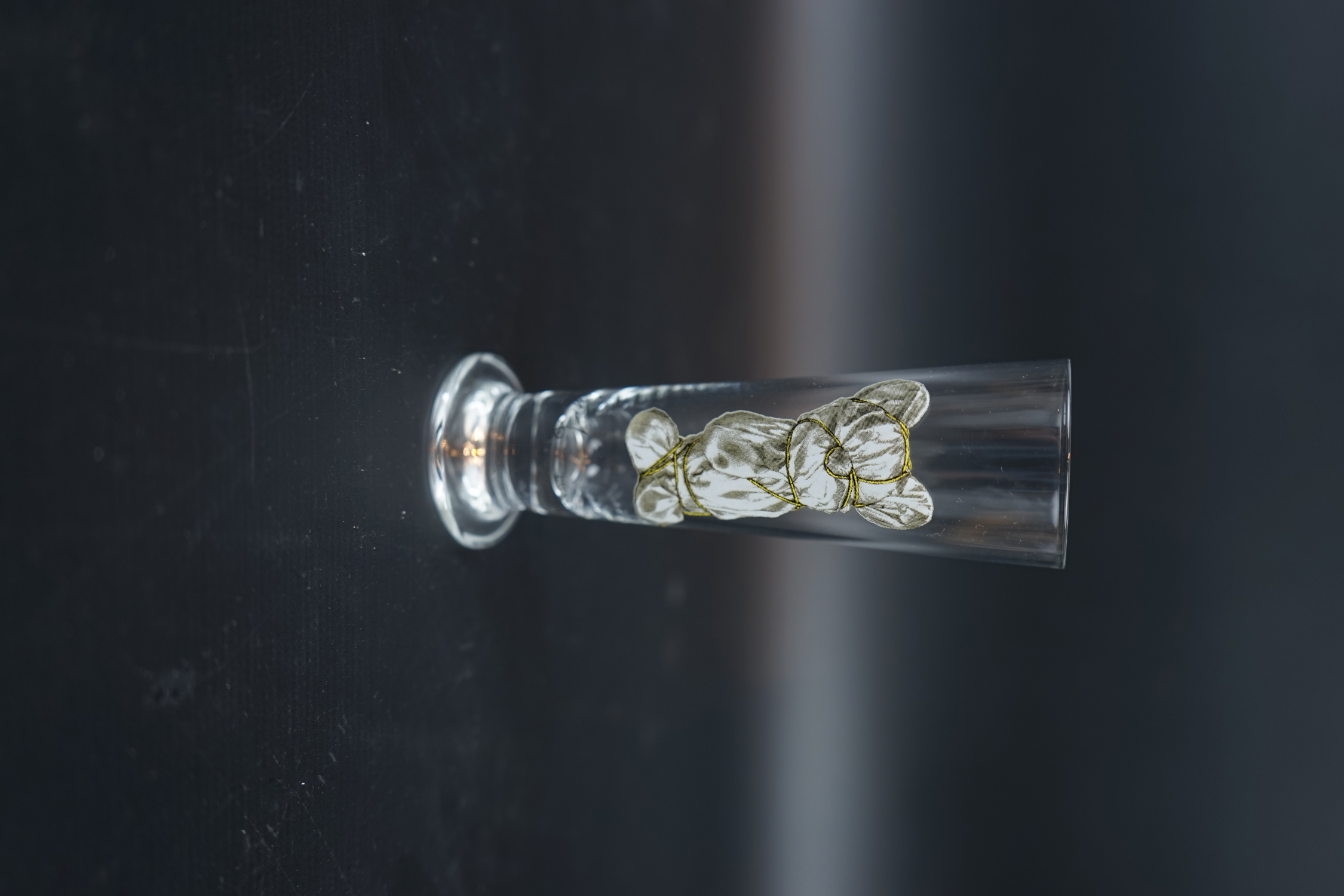 Lasse Åberg, snapsglas, 14 st, "Packad mus".