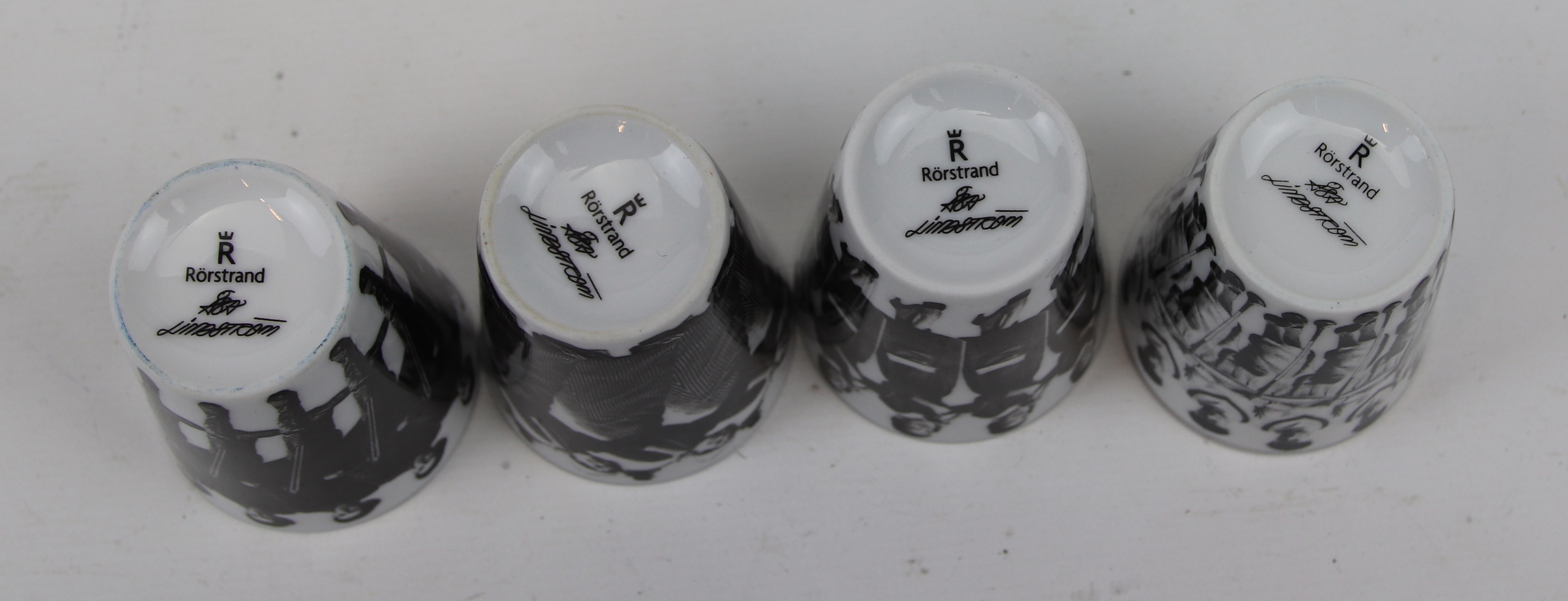 Bilder Åsa Lindström, snapsglas, 4 st, porslin, Rörstrand, 2000-tal.