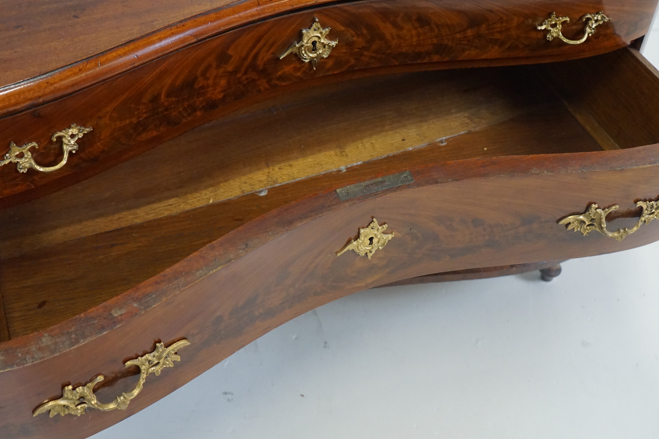 Byrå, 3 lådor, trä, svängd front, senbarockstil, 1900-tal.