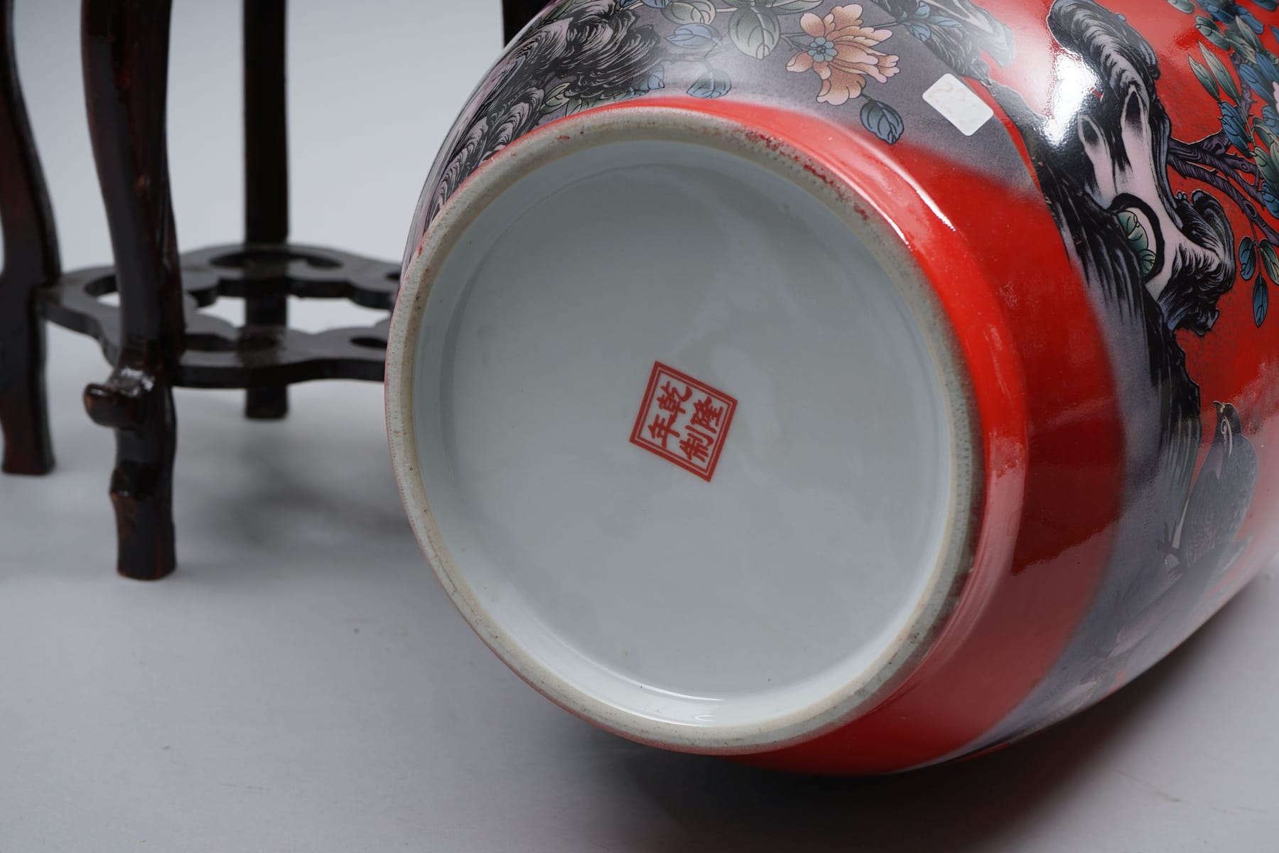 Kiinalainen lattiaruukku ja puujalusta