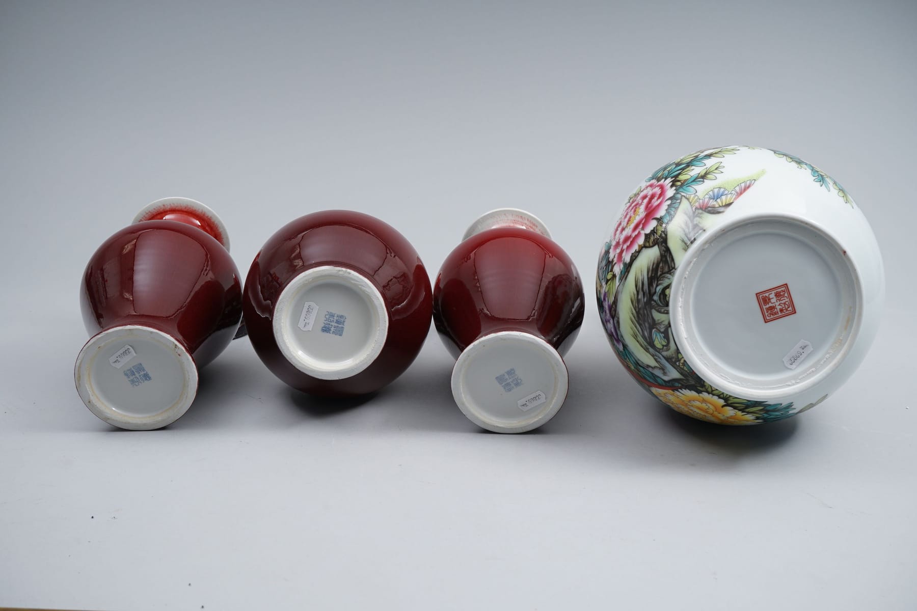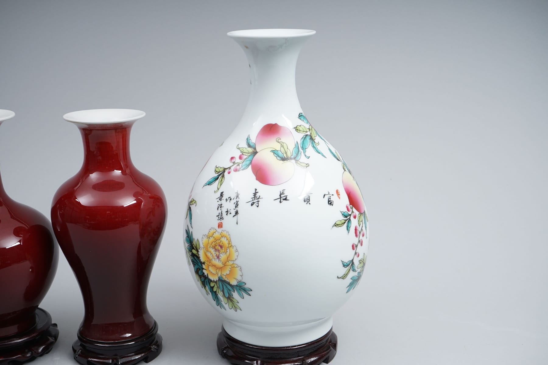 Bilder 4 kpl Kiinalaisia keramiikkamaljakoita puujalustoilla