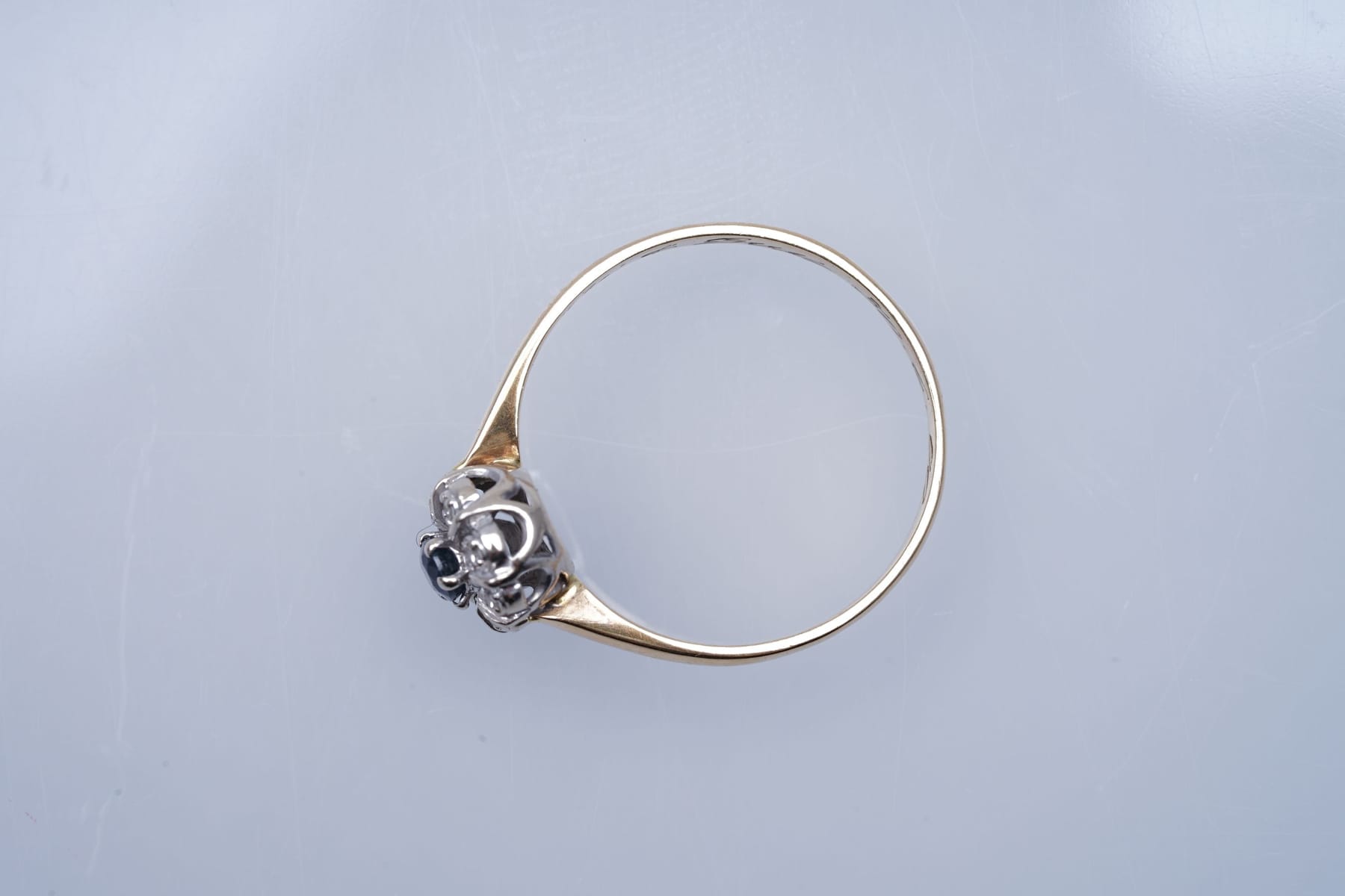 Sormus, kultaa, safiiri ja timantteja