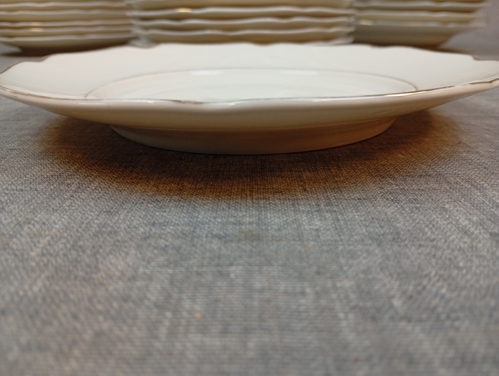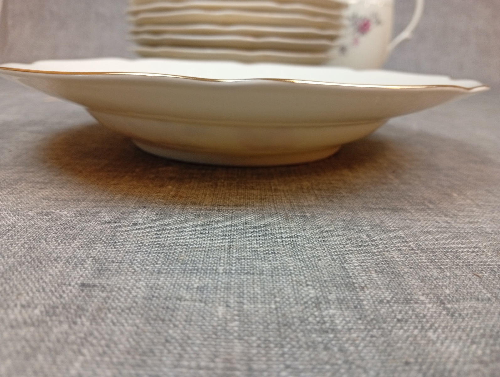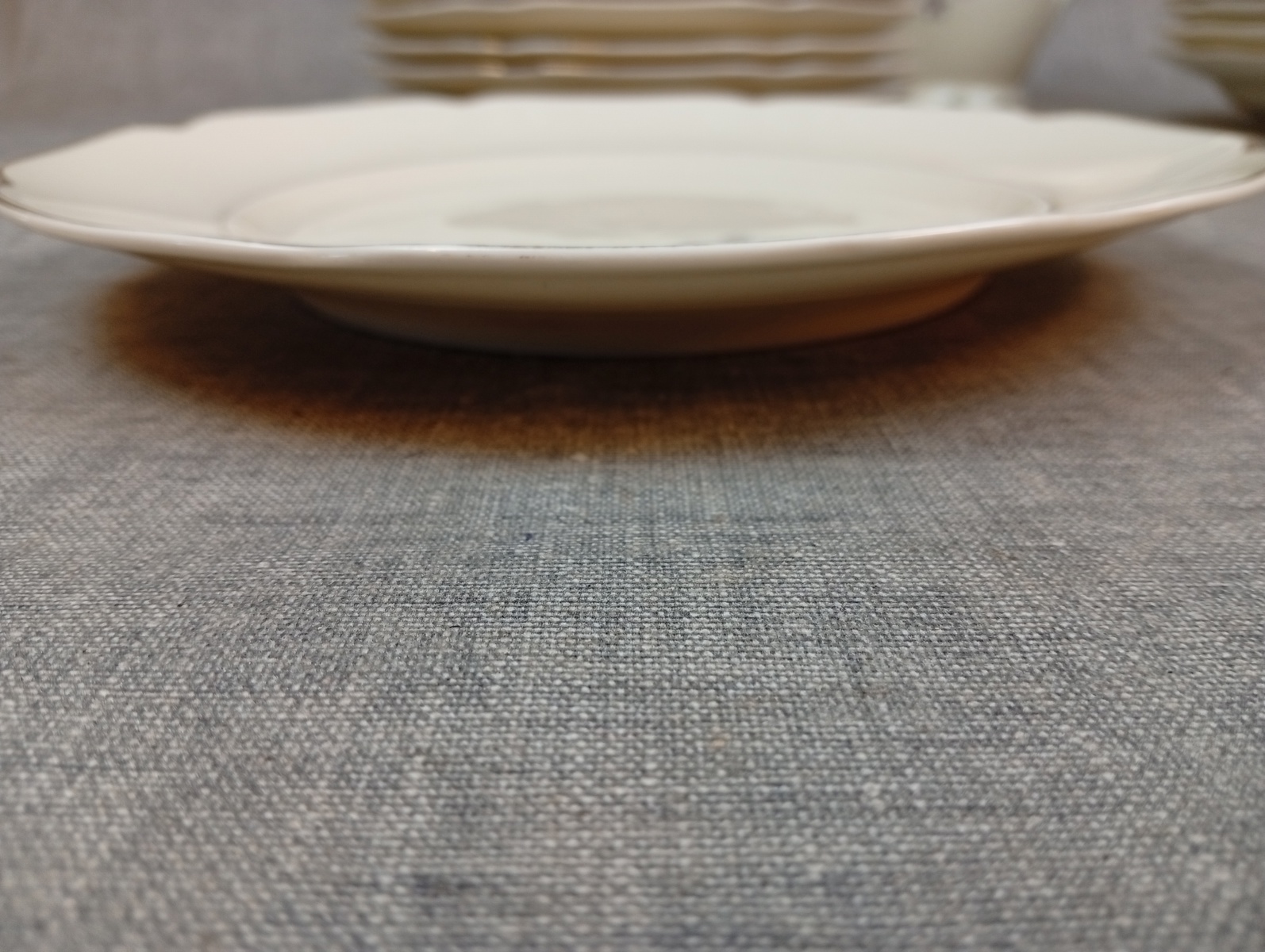 Bruksslitage, färgbortfall, Mest på assietter & förrättstallrikar.