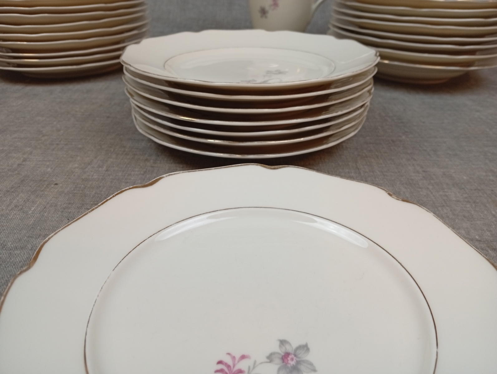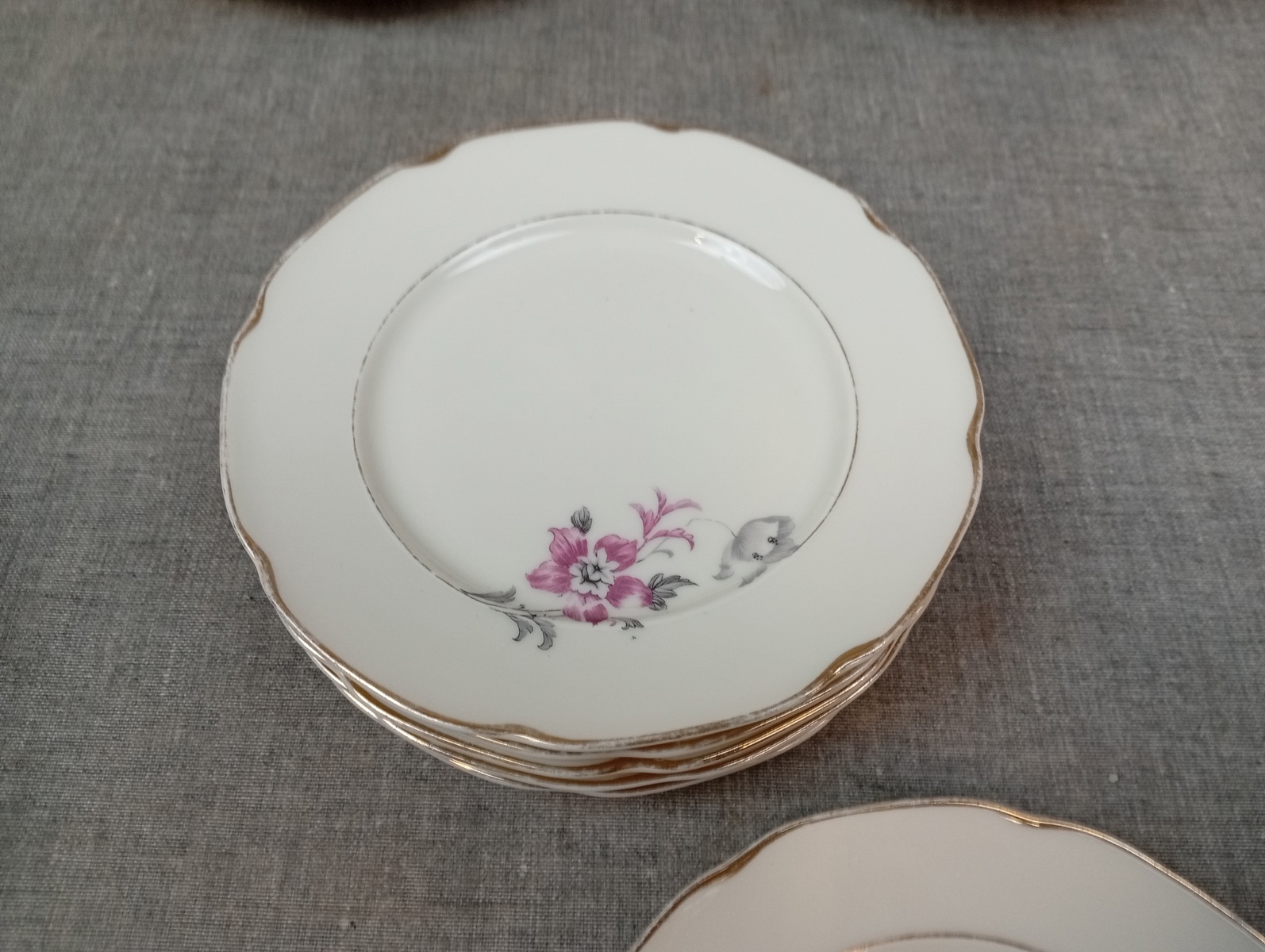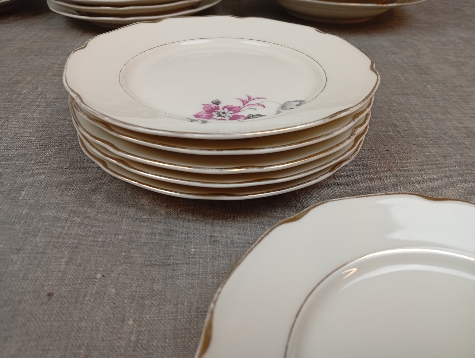 Bruksslitage, färgbortfall, Mest på assietter & förrättstallrikar.