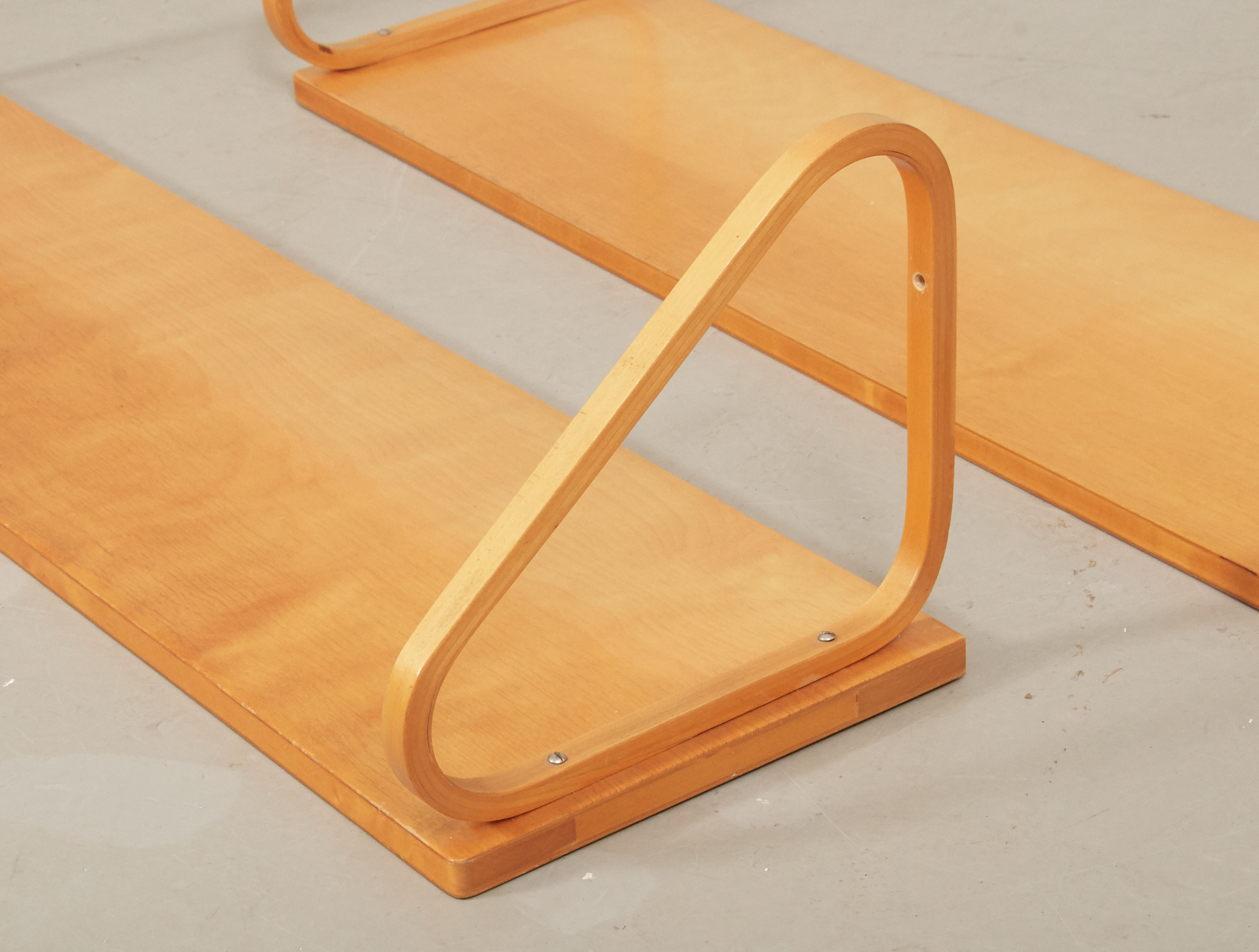 Med 2 st hyllplan, björkfaner, höjd konsol 58 cm, bredd hyllplan 89, djup 25 cm, smärre slitage