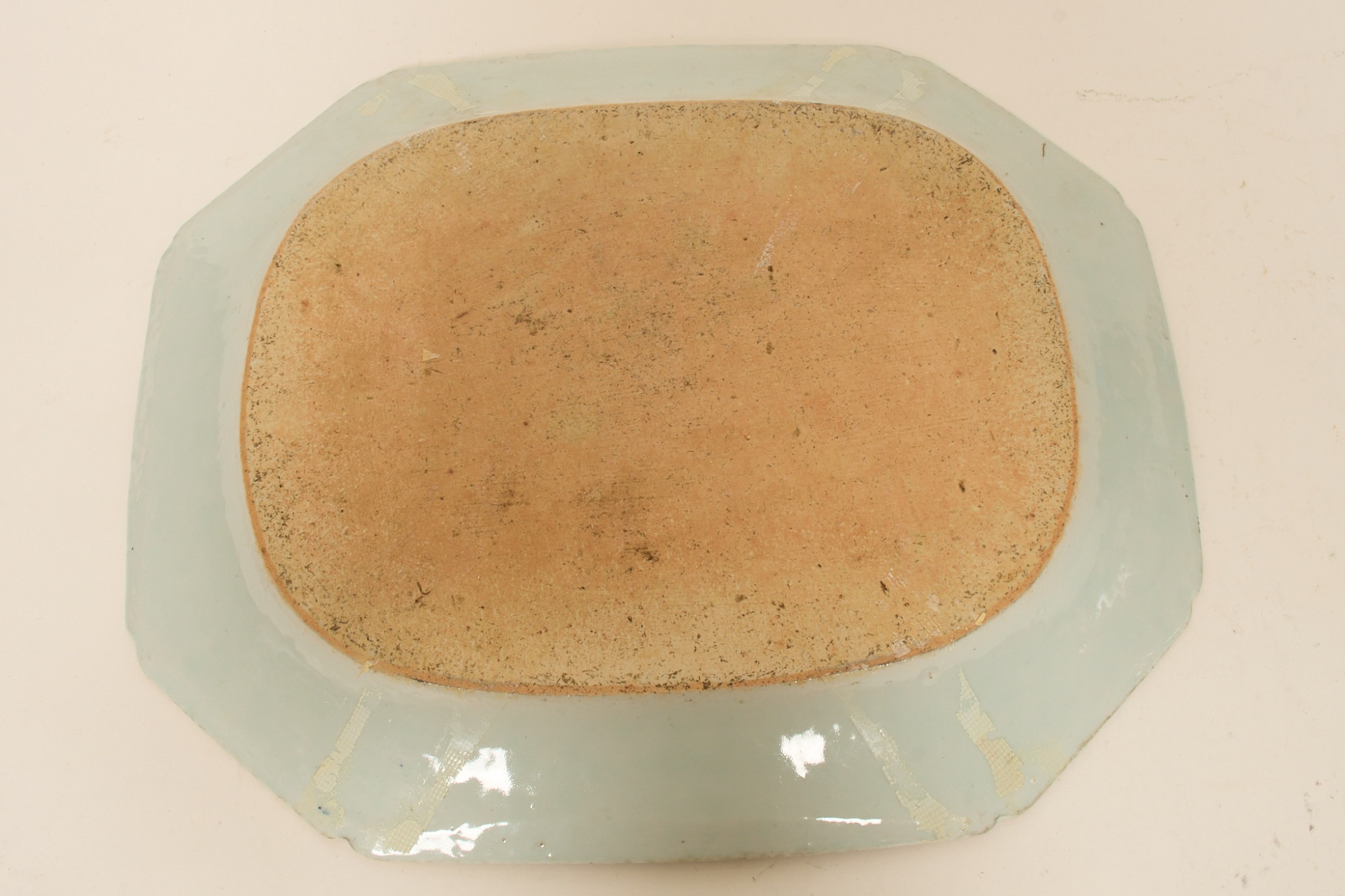 Dekor i underglasyrblått, längd 42 cm, tillverkningsdefekter, klisterrester, för övrigt smärre slitage.