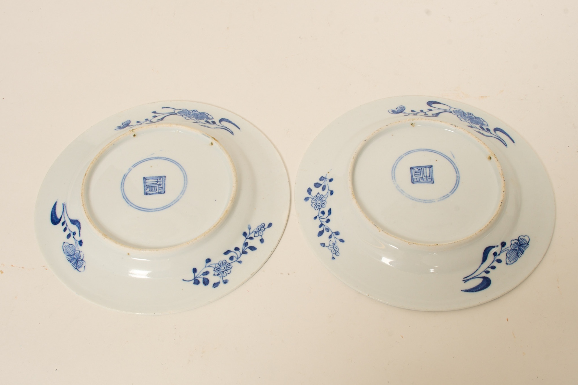 Ett par, dekor i underglasyrblått, med figurscener, diam 23 cm, smärre bruksslitage, tillverkningsdefekter.