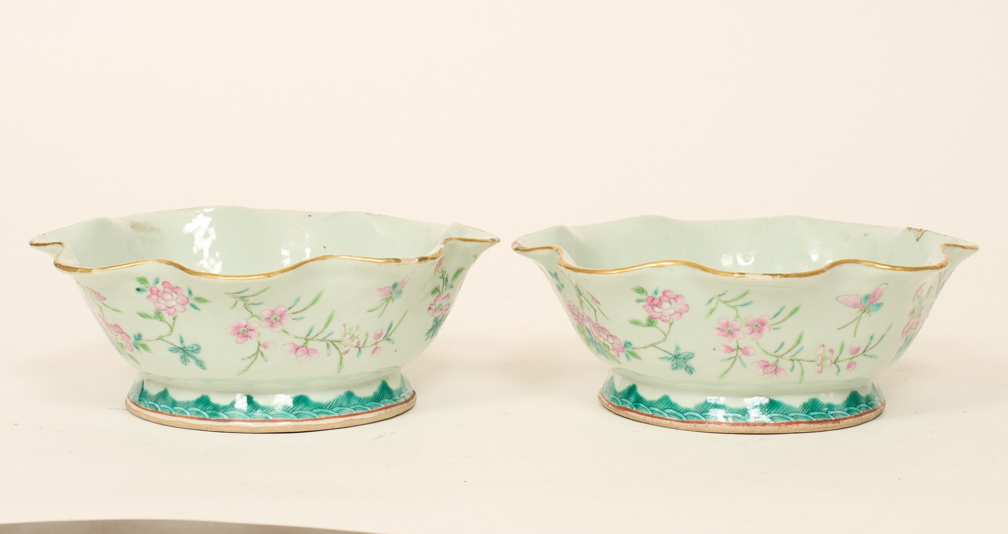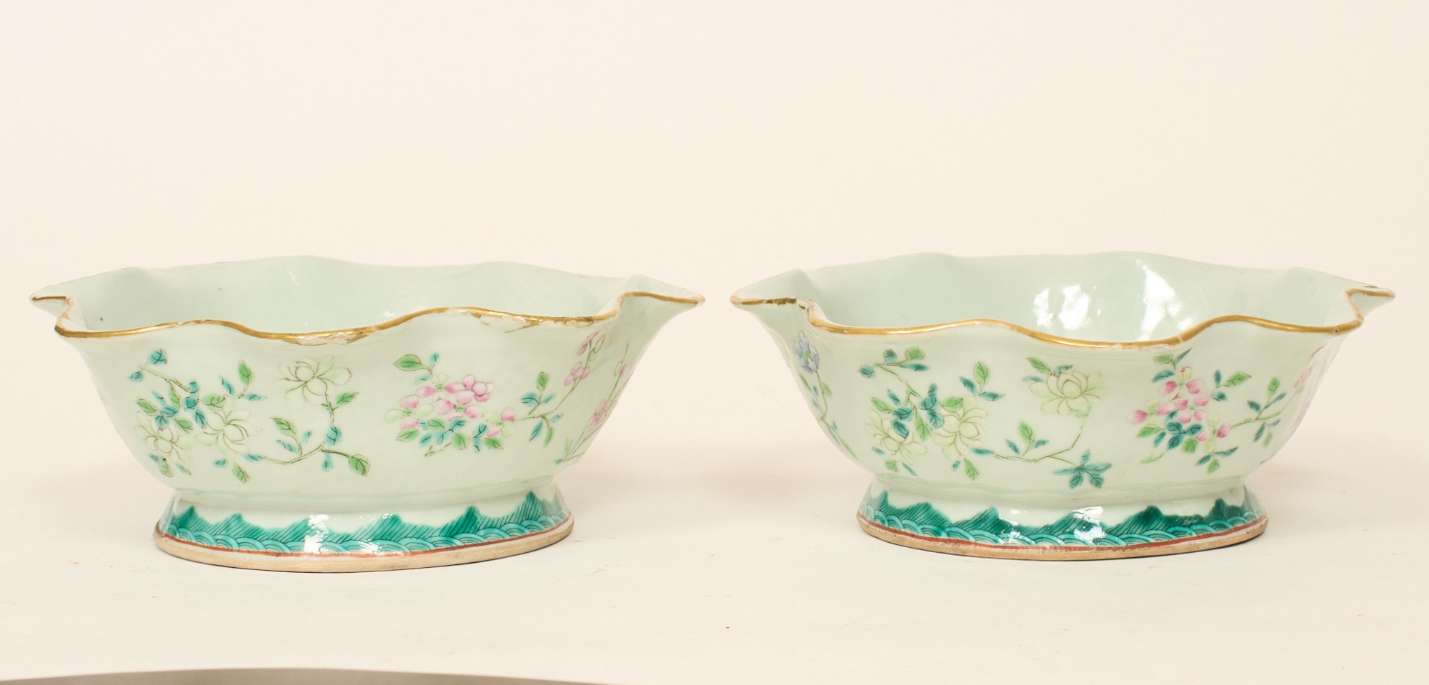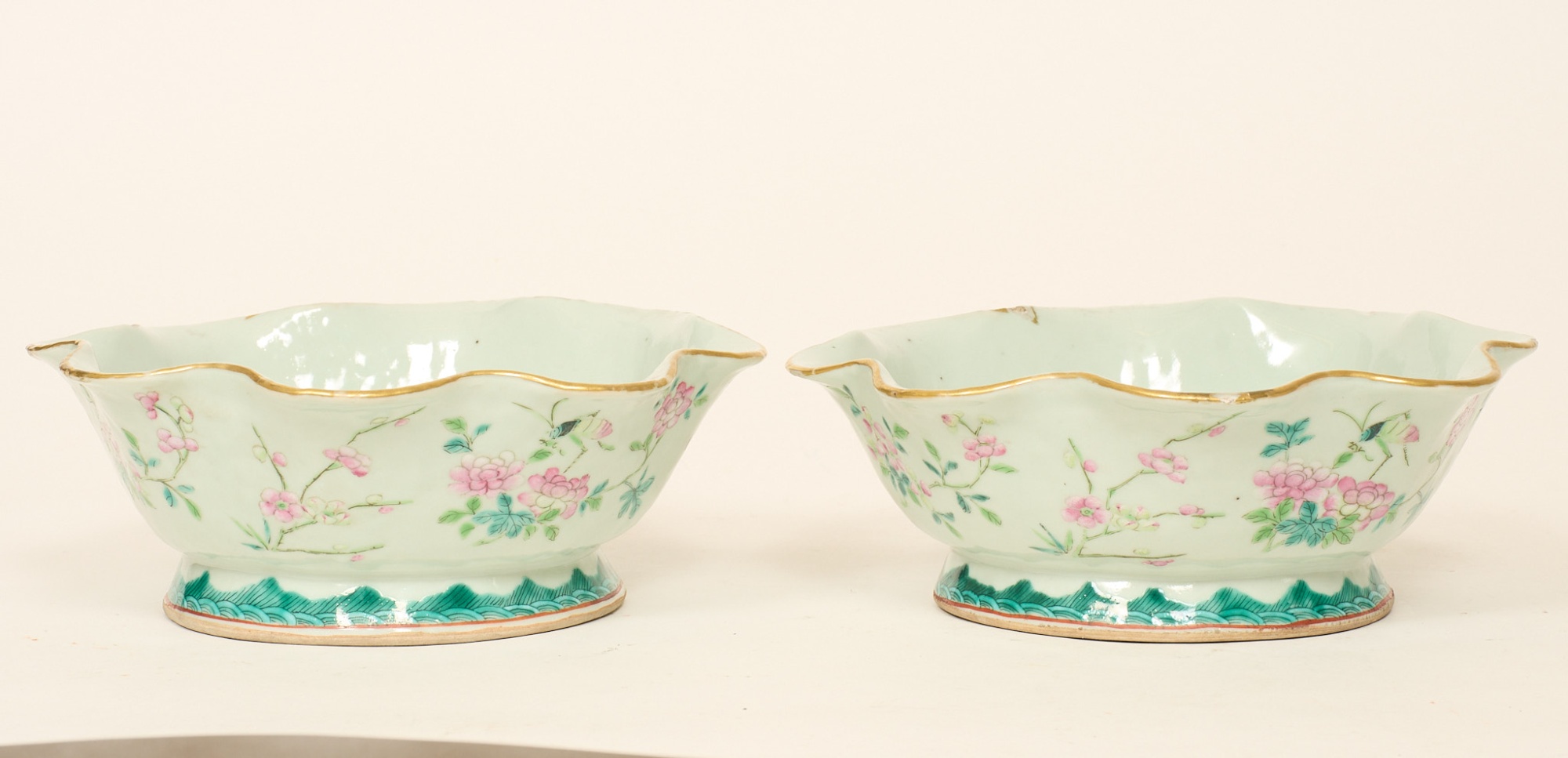 Ett par, dekor med blommor, diam. 22 cm, nagg